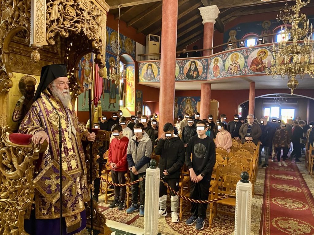 Πριν το τέλος της Θείας Λειτουργίας ο Σεβασμιώτατος μίλησε στους μαθητές, που από νωρίς είχαν προσέλθει στο ναό με τη συνοδεία των διδασκάλων τους για την Λειτουργία των Προηγιασμένων Δώρων.