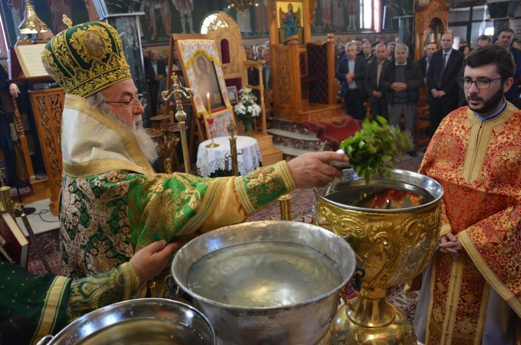 Μετά το τέλος της Θείας Λειτουργίας τελέστηκε από τον Σεβασμιώτατο, παρουσία των πολιτικών αρχών του τόπου με επικεφαλής τον Βουλευτή Νομού Καβάλας κ. Μακάριο Λαζαρίδη και τον Αντιπεριφερειάρχη Ν. Καβάλας κ. Κωνσταντίνο Αντωνιάδη και πλήθος πιστών, η ακολουθία του Αγιασμού όπου και ανεγνώσθησαν οι ευχές του Αγίου Τρύφωνος.
