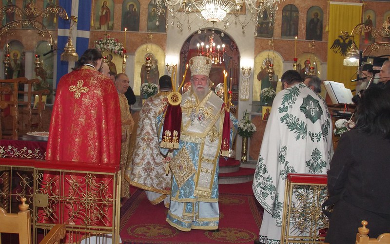 Το πρωί της εορτής ο Σεβασμιώτατος Ποιμενάρχης ετέλεσε τη Θεία Λειτουργία πλαισιωμένος υπό Ιερέων και Διακόνων της Μητροπόλεως. Τον Θείο Λόγον εκήρυξε ο Σεβασμιώτατος Ποιμενάρχης μετά την ανάγνωση του Ευαγγελίου αναφερόμενος στους εορτάζοντας Αγίους και τονίζοντας τη συμπόρευση της θρησκευτικής με την εθνική μνήμη.