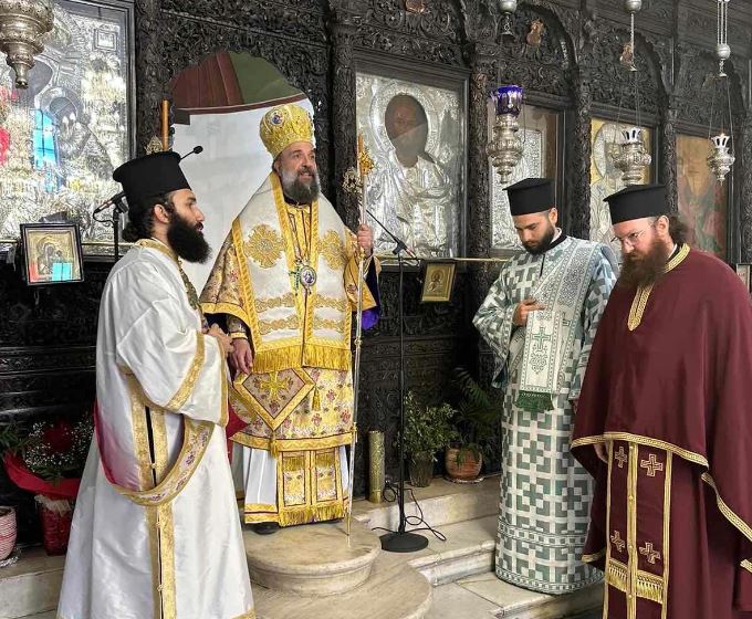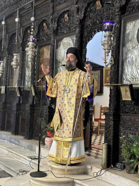 Ο Σεβασμιώτατος στο κήρυγμά του αναφέρθηκε με γλαφυρό τρόπο στο γεγονός της θεραπείας του δαιμονιζομένου νέου που έλαβε χώρα μετά ακριβώς από την μεταμόρφωση του Σωτήρος, σαράντα μέρες πριν από την σταυρική Του θυσία, κατά τον Ευαγγελιστή Μάρκο.