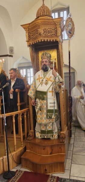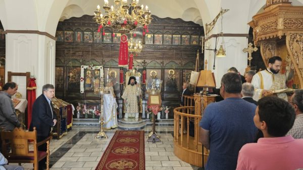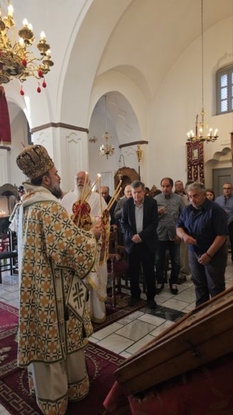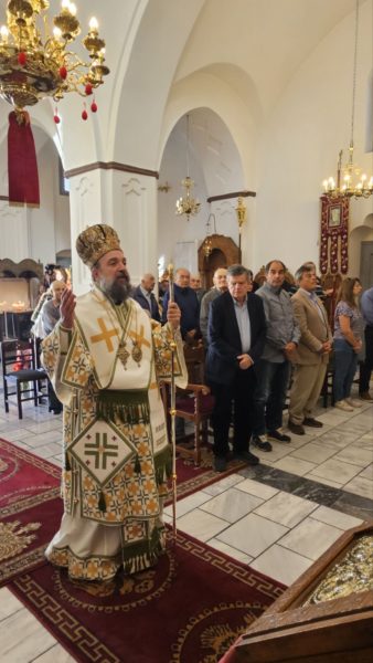 Προ του «Δι’ ευχών», ο Σεβασμιώτατος ευχαρίστησε θερμά όλους όσοι συνέβαλαν στην ευπρέπεια της πανηγύρεως και ιδιαιτέρως τον μεγάλο ευεργέτη της πατρίδας μας κ. Αθανάσιο Μαρτίνο για την εκ βάθρων ανακαίνιση του Ιερού Ναού και για την εν γένει προσφορά του προς την Ιερά Μητρόπολη.