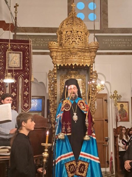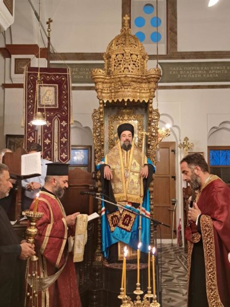Την παραμονή της εορτής ο Σεβασμιώτατος Μητροπολίτης Θήρας Αμοργού και Νήσων κ. Αμφιλόχιος χοροστάτησε στον Πανηγυρικό Εσπερινό, ευλόγησε τους προσφερθέντες άρτους και κήρυξε τον θείο λόγο.