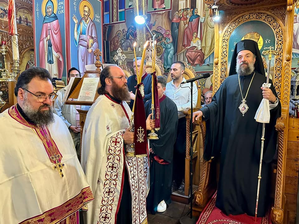 Ανήμερα της εορτής, ο Σεβασμιώτατος χοροστάτησε στην ακολουθία του Όρθρου, προεξήρχε της Θείας Λειτουργίας και εκήρυξε τον θείο λόγο αναφερόμενος στην πνευματική πανοπλία του χριστιανού προκειμένου να αντιμετωπίσει τον πόλεμο κατά του διαβόλου συμφωνα με τον Απόστολο Παύλο.