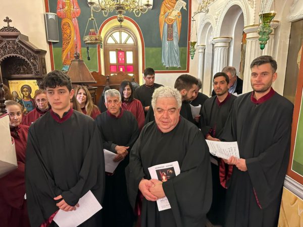 Στην ακολουθία έψαλλε η χορωδία Βυζαντινής Μουσικής της Ιεράς Μητροπόλεως.