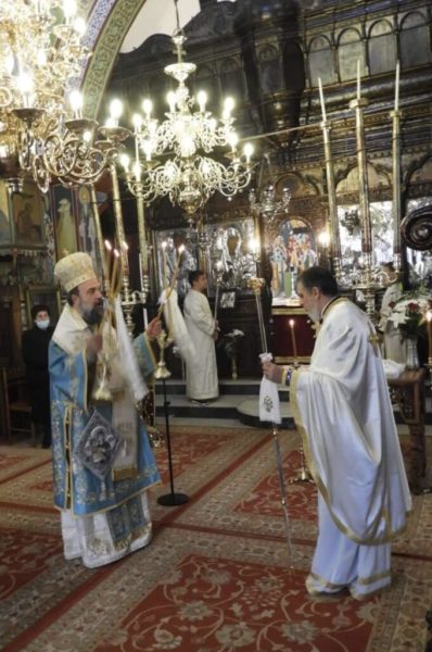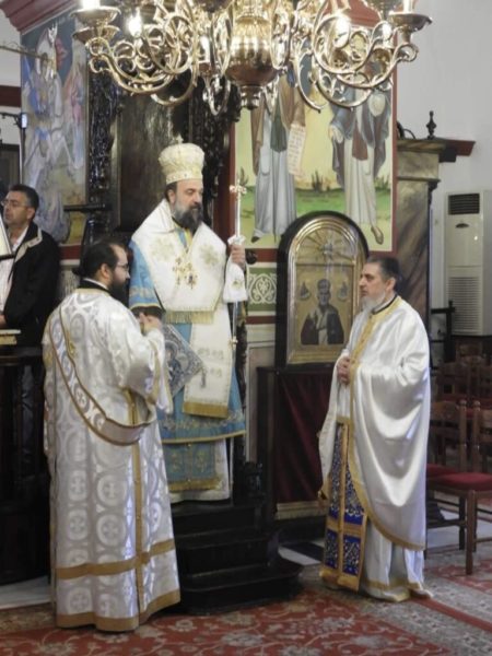 Στο τέλος της Θείας Λειτουργίας ευχήθηκε προεορτίως στο εκκλησίασμα για την πανήγυρη του Ενοριακού τους Ναού.