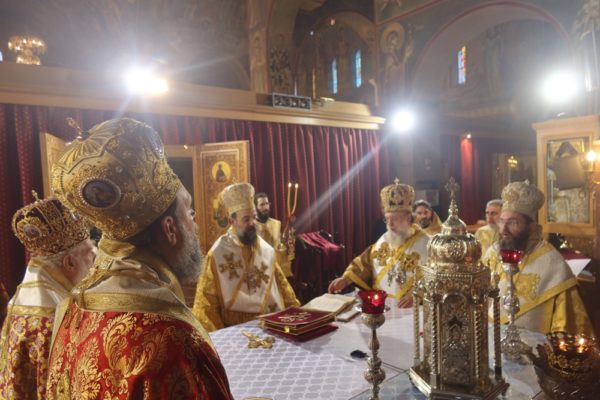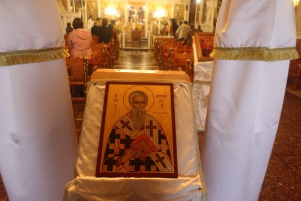 Στον Ιερό Ναό του Αγίου Γεωργίου Κυνοσάργους, στον οποίο ως Πρεσβύτερος διακόνησε ο Σεβασμιώτατος νέος Μητροπολίτης Θήρας, Αμοργού και Νήσων κ. Αμφιλόχιος, τελέσθηκε σήμερα το πρωί, επί τη ιερά μνήμη του Αγίου Αμφιλοχίου, Επισκόπου Ικονίου, Πολυαρχιερατική Θεία Λειτουργία, προεξάρχοντος του άγοντος τα ονοματήριά του Σεβασμιωτάτου Μητροπολίτου Θήρας κ. Αμφιλοχίου, συνιερουργούντων των Σεβασμιωτάτων Μητροπολιτών Σύρου κ. Δωροθέου Β΄, Κηφισίας κ. Κυρίλλου, Νέας Ιωνίας κ. Γαβριήλ, Πολυανής και Κιλκισίου κ. Βαρθολομαίου, συνευχομένου του Σεβασμιωτάτου Μητροπολίτου Καισαριανής κ. Δανιήλ και ευχηθεντος του Σεβασμιωτάτου Μητροπολίτου Μεσσηνίας κ. Χρυσοστόμου, με τη συμμετοχή του Γενικού Αρχιερατικού Επιτρόπου Θήρας Πρωτοπρ. Νικολάου Σιγάλα, Πρεσβυτέρων και Διακόνων από την Ιερά Αρχιεπισκοπή Αθηνών.