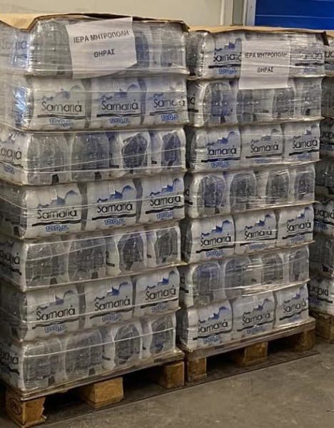 Παλέτες με τα είδη που υποδείχθηκαν από τη φιλανθρωπική οργάνωση «Αποστολή» της Ιεράς Αρχιεπισκοπής Αθηνών, ήτοι όσπρια, χυμοί και εμφιαλωμένο νερό, ευρίσκονται καθ’ οδόν προς το Στρατόπεδο ΚΑΠΟΤΑ στο Μενίδι, όπου θα συγκεντρωθούν και μέσω του Υπουργείου Εξωτερικών θα αποσταλούν στις πληγείσες περιοχές.