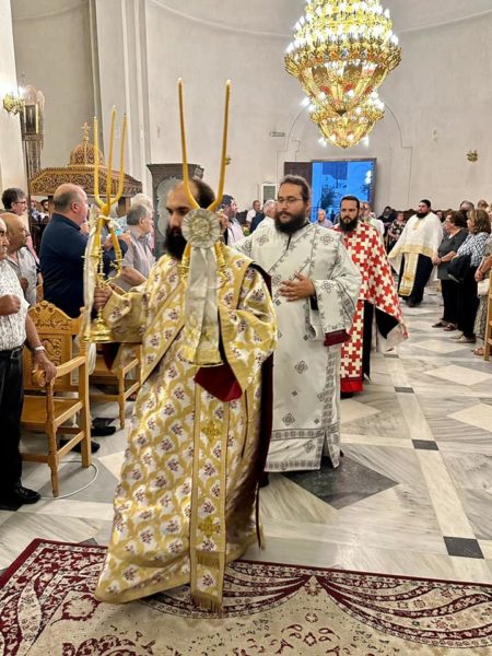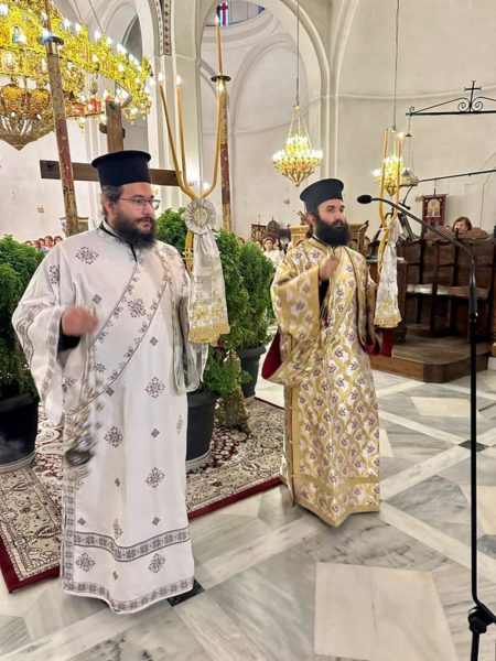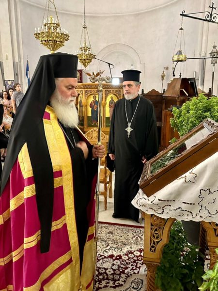 Την παραμονή της εορτής ο Σεβασμιώτατος Μητροπολίτης Θήρας, Αμοργού και Νήσων κ. Αμφιλόχιος υποδέχθηκε στο Πανθηραϊκό Προσκύνημα του Τιμίου Σταυρού τους Σεβασμιωτάτους Μητροπολίτες Κηφισίας, Αμαρουσίου, Ωρωπού και Μαραθώνος κ. Κύριλλο και Καλαβρύτων και Αιγιαλείας κ. Ιερώνυμο.
