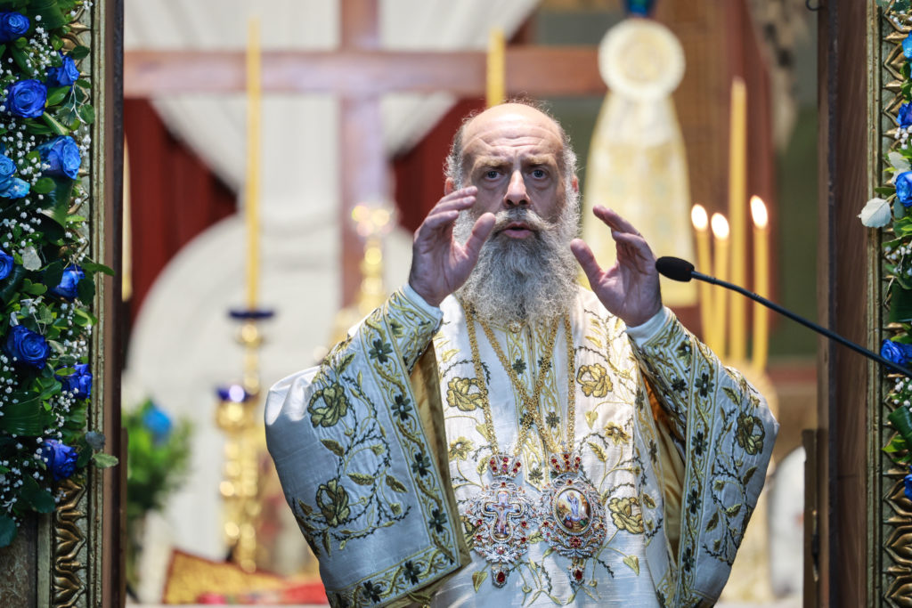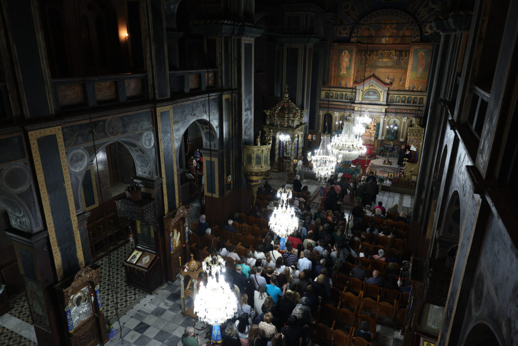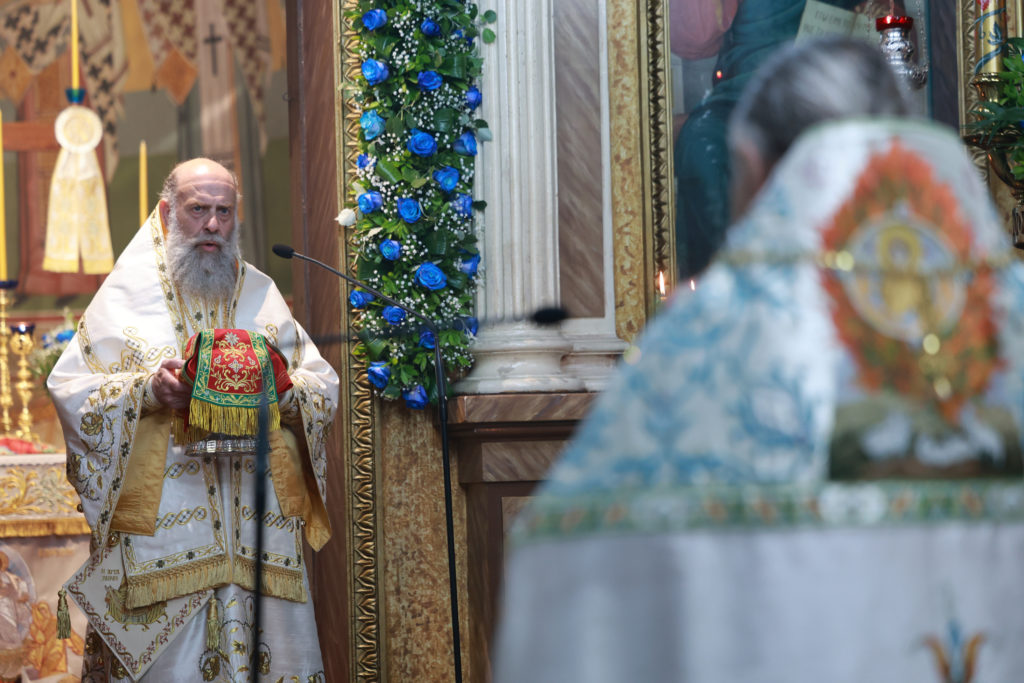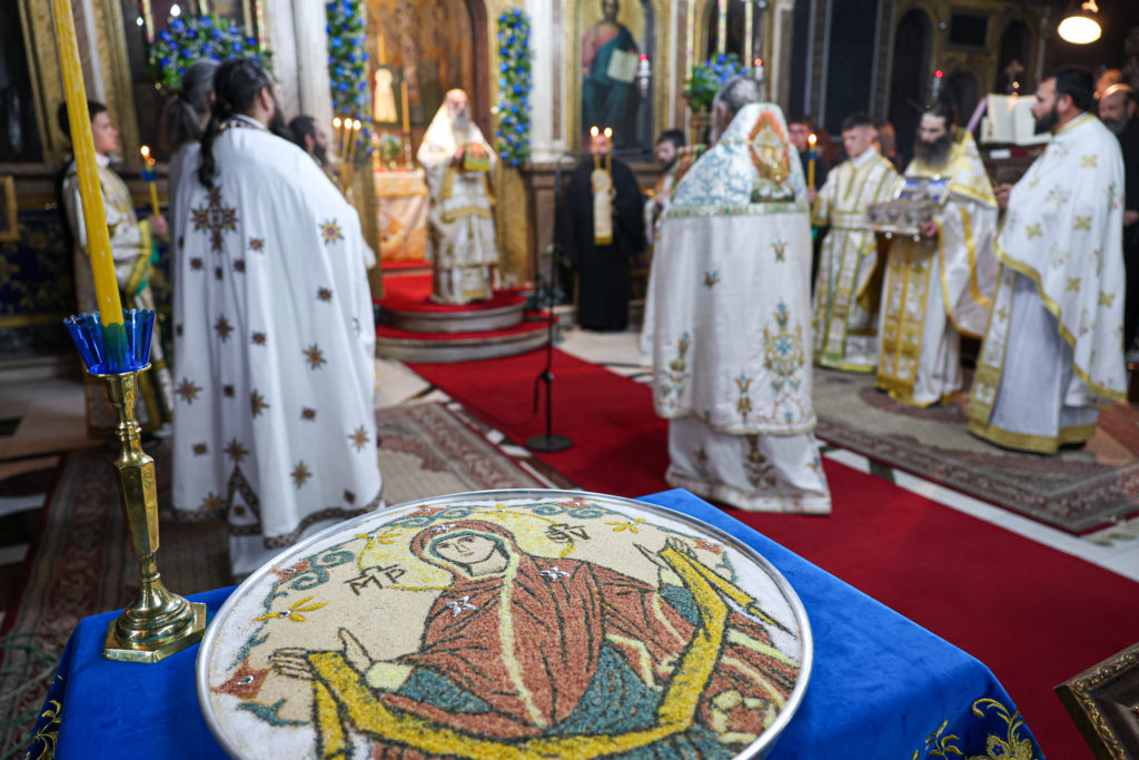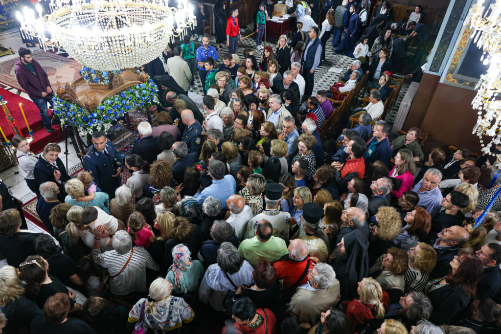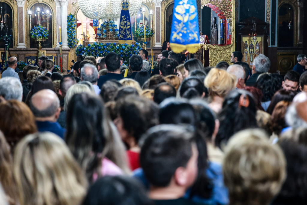 Καθ’ όλη τη διάρκεια της Ιεράς Αγρυπνίας πλήθος πιστών συνέρρεε στον Ιερό Ναό για να λάβει τη Χάρη της Παναγίας μας.