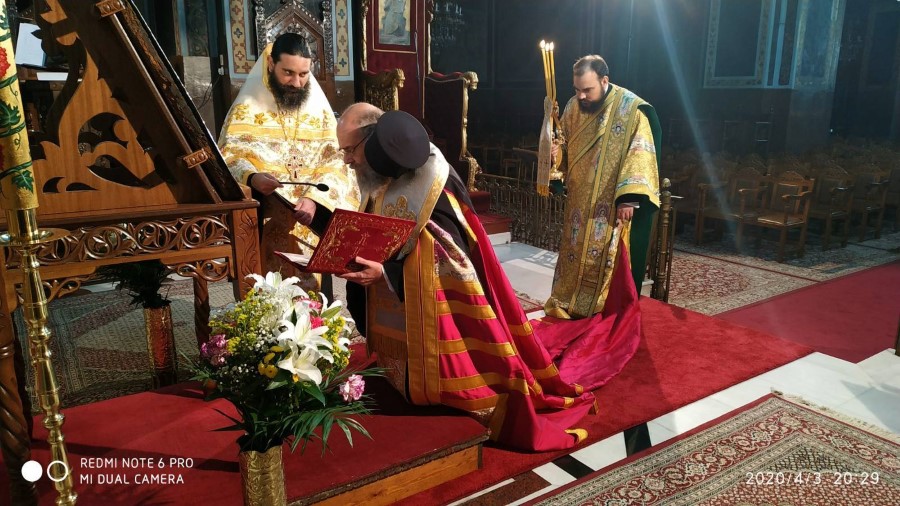 Ο Σεβασμιώτατος Μητροπολίτης Θεσσαλιώτιδος και Φαναριοφερσάλων κ. Τιμόθεος, την Παρασκευή 3 Απριλίου 2020, χοροστάτησε στην ακολουθία του Ακαθίστου Ύμνου προς την Υπεραγία Θεοτόκο και ομίλησε στον Ιερό Μητροπολιτικό Ναό Αγίων Κωνσταντίνου και Ελένης Καρδίτσης κεκλεισμένων των θυρών.