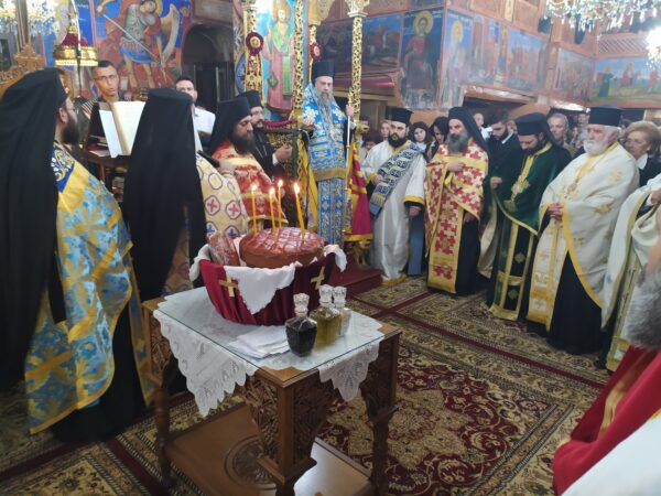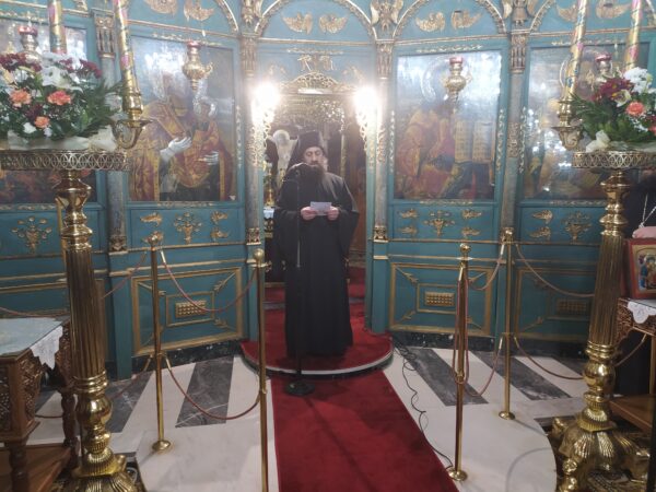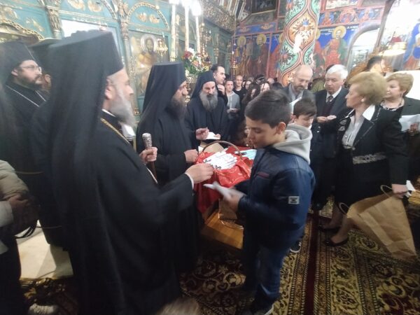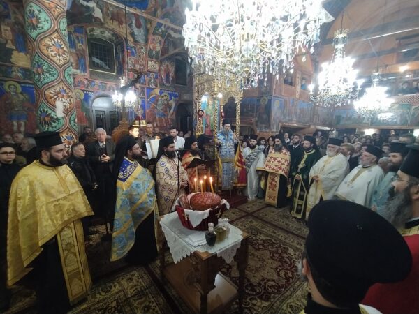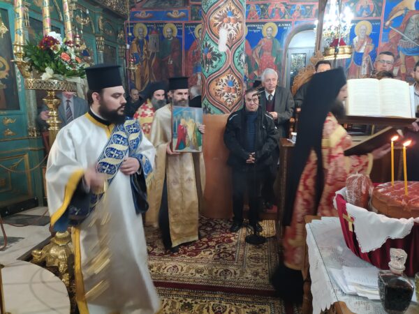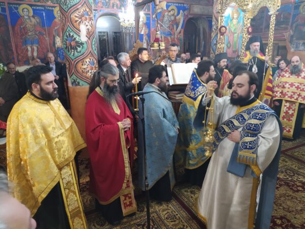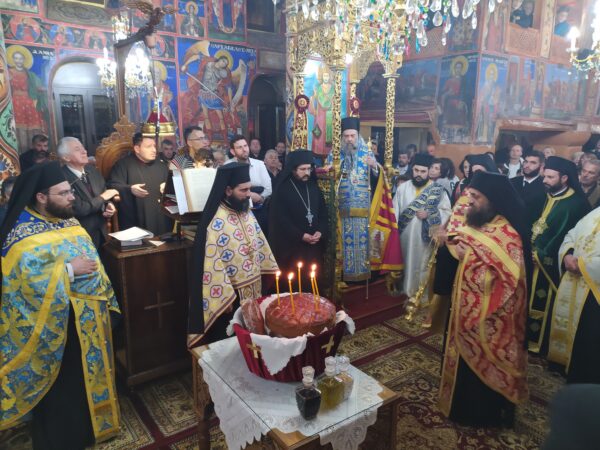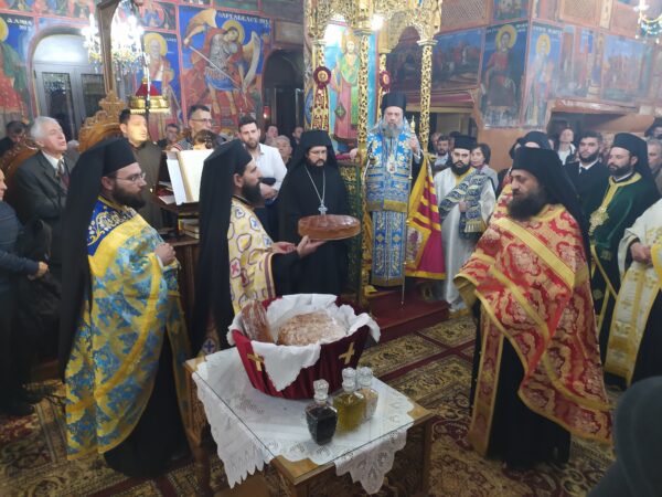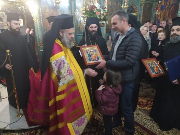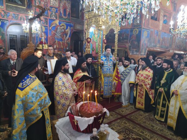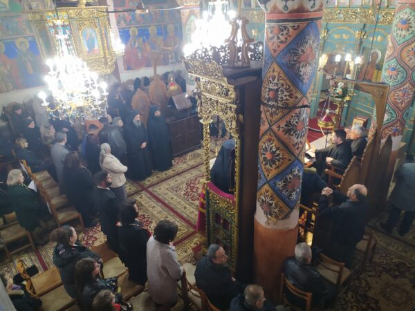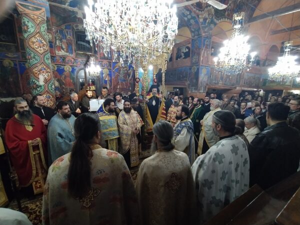 Νωρίτερα, τελέστηκε Μέγας Πανηγυρικός Αρχιερατικός Εσπερινός μετ’ αρτοκλασίας, στον οποίο χοροστάτησε ο Σεβ. Μητροπολίτης Θεσσαλιώτιδος κ. Τιμόθεος. Τον Θείο Λόγο κήρυξε ο οικείος Ποιμενάρχης κάνοντας αναφορά μεταξύ άλλων στο μήνυμα της επερχόμενης εορτής της Υπαπαντής του Κυρίου και την σχέση της με τον θεσμό της πολύτεκνης οικογένειας, αλλά και με την σημασία του ρόλου της μητέρας.
