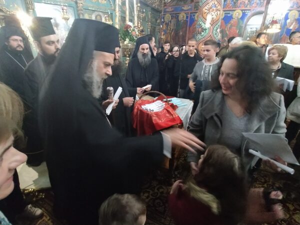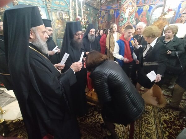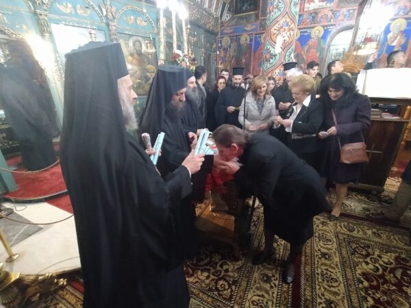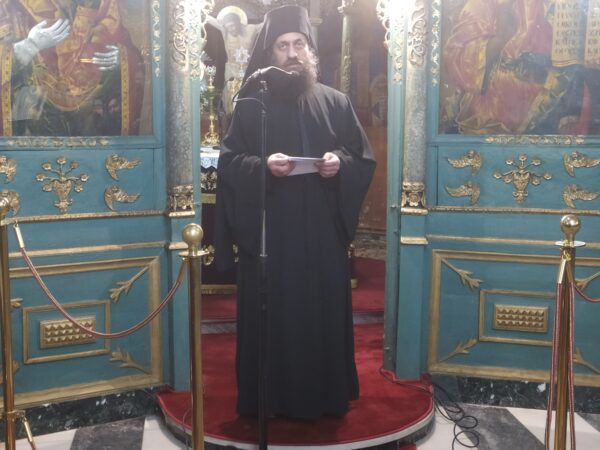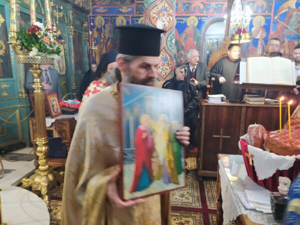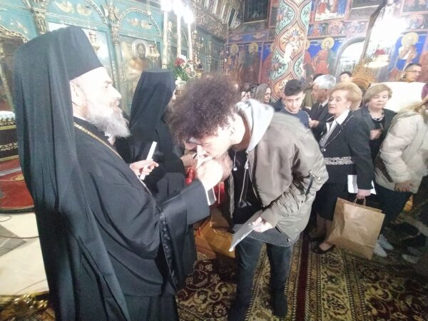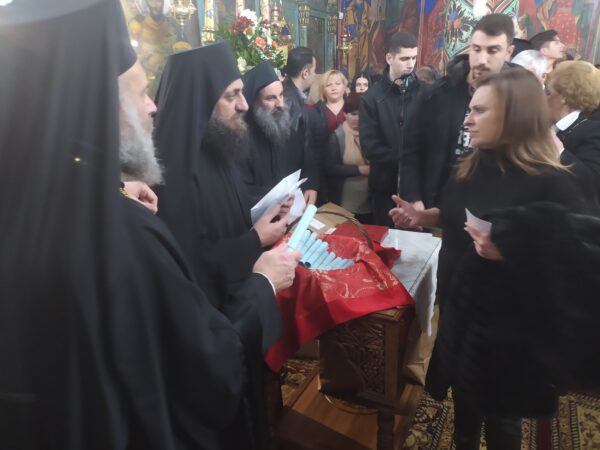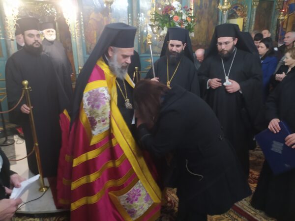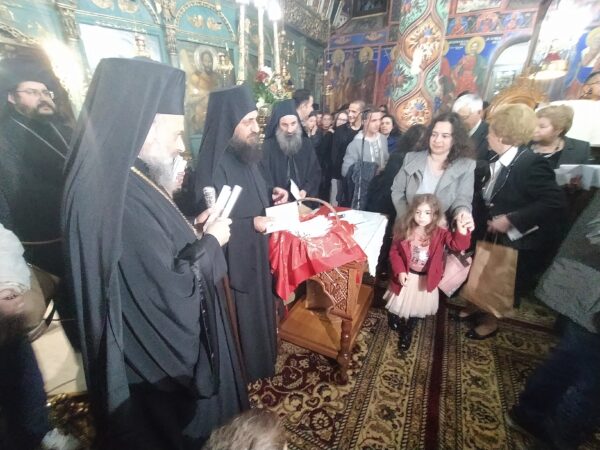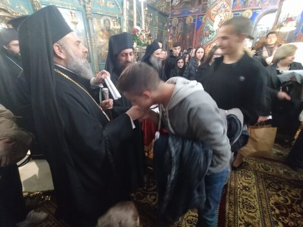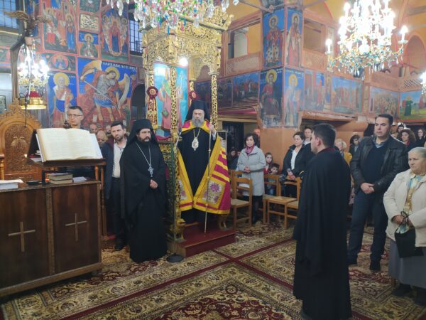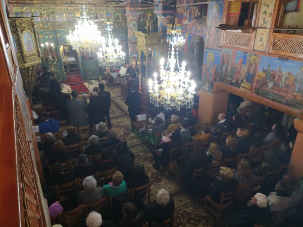 Νωρίτερα, τελέστηκε Μέγας Πανηγυρικός Αρχιερατικός Εσπερινός μετ’ αρτοκλασίας, στον οποίο χοροστάτησε ο Σεβ. Μητροπολίτης Θεσσαλιώτιδος κ. Τιμόθεος. Τον Θείο Λόγο κήρυξε ο οικείος Ποιμενάρχης κάνοντας αναφορά μεταξύ άλλων στο μήνυμα της επερχόμενης εορτής της Υπαπαντής του Κυρίου και την σχέση της με τον θεσμό της πολύτεκνης οικογένειας, αλλά και με την σημασία του ρόλου της μητέρας.