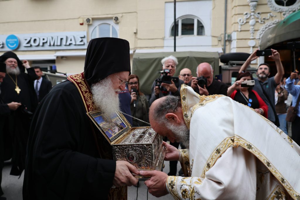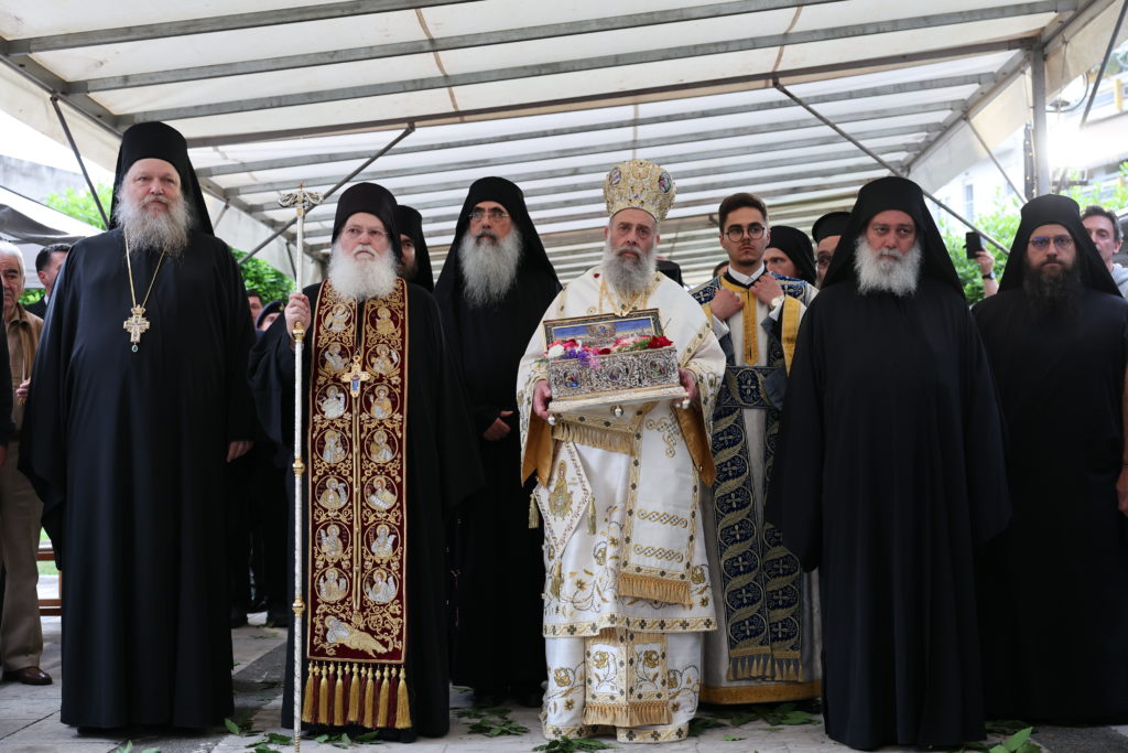 Ο Γέροντας Εφραίμ αναφέρθηκε στην αντιφώνησή του στη μεγάλη ευλογία για την πόλη να υποδέχεται σήμερα την Αγία Ζώνη και ευχαρίστησε τον Σεβασμιώτατο για την τιμή.