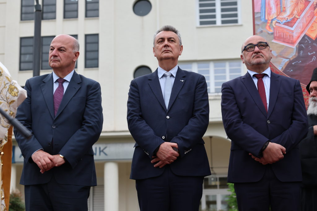 Στην κεντρική Πλατεία της Καρδίτσας, ο Δήμαρχος Βασίλης Τσιάκος, απηύθυνε χαιρετισμό από την ειδική εξέδρα που έχει στηθεί. Παρέστησαν οι άρχοντες της πόλης, μεταξύ αυτών ο κ. Κωνσταντίνος Τσιάρας, Υπουργός Αγροτικής Ανάπτυξης και Τροφίμων και Βουλευτής Καρδίτσας της Ν.Δ.