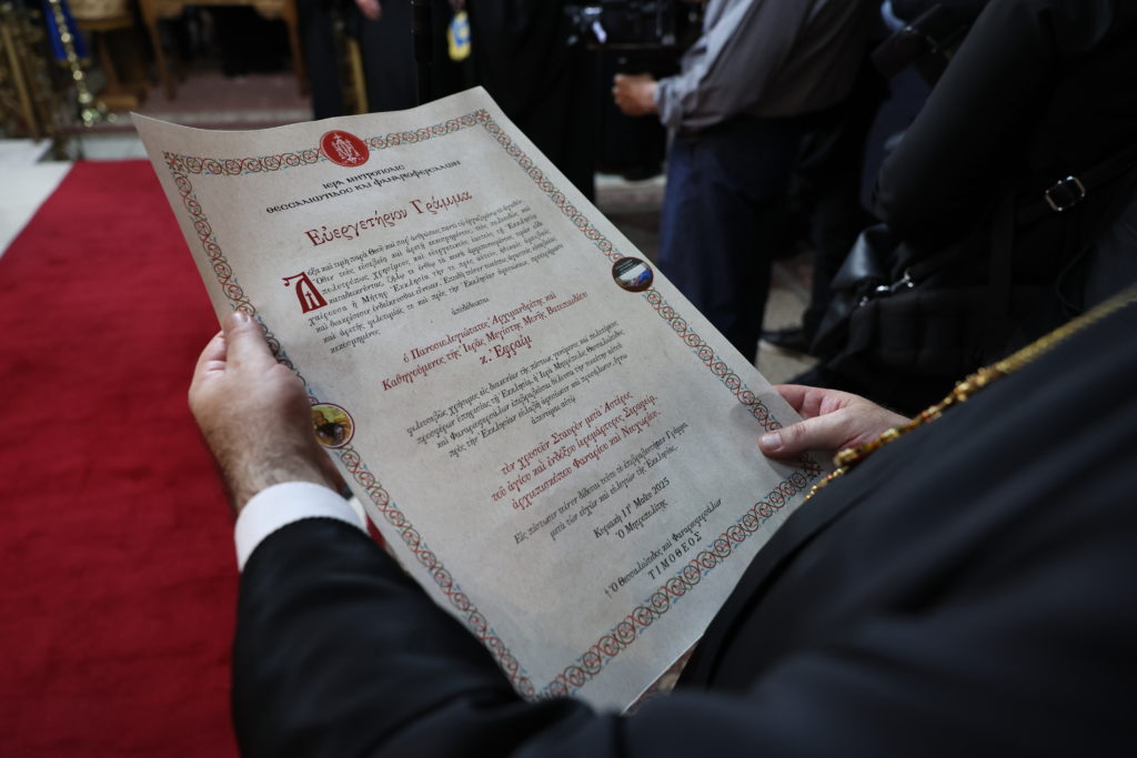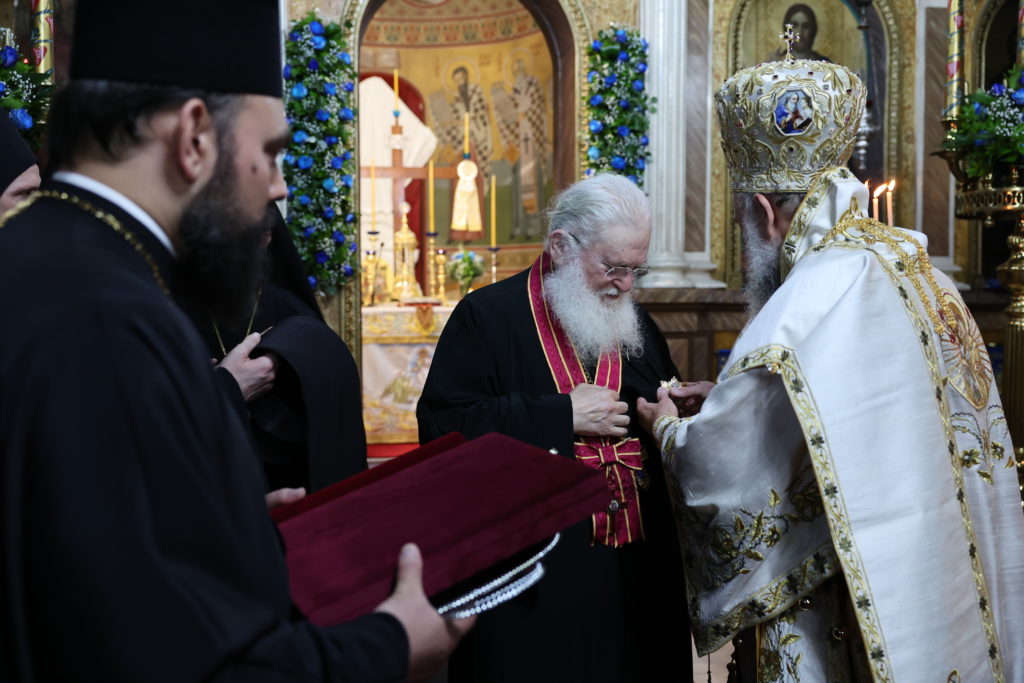 Σε ένδειξη τιμής και χαράς για την ημέρα ο Ποιμενάρχης επέδωσε στον Γέροντα Εφραίμ το παράσημο με τον Χρυσό Σταυρό δια Αστέρος του Αγίου Ιερομάρτυρα Σεραφείμ, προστάτη της Ιεράς Μητροπόλεως, με τον κλήρο και τον λαό να αναφωνούν το “Άξιος”
