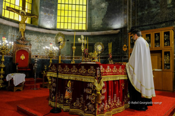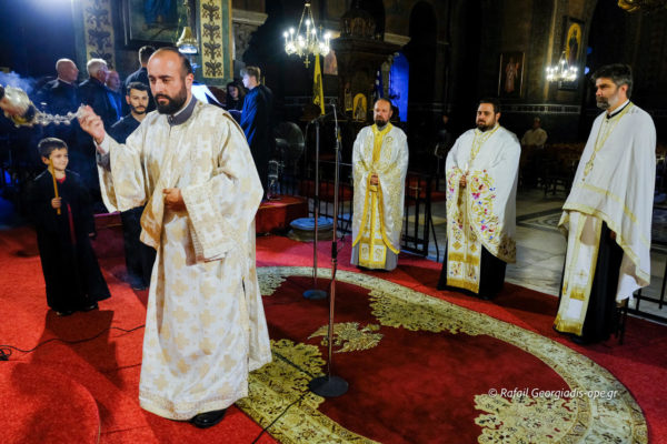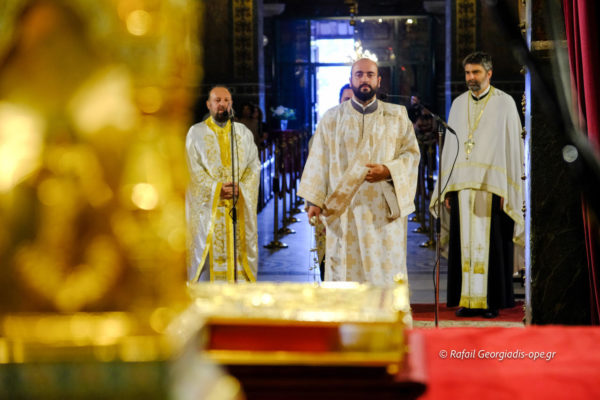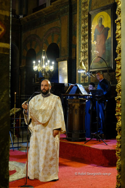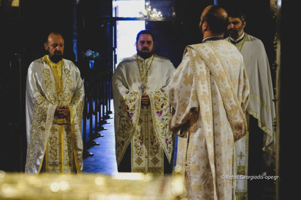 Την ακολουθία του Εσπερινού τέλεσαν οι ιερείς του Καθεδρικού ναού αρχιμ. Ειρηναίος Βογιατζής, Πρωτ. Παλαιολόγος Μάνος, ο Πρωτ. Νικόλαος Ζουγκανάρου και ο ιεροδ. Αλέξανδρος Νικολόγιου.