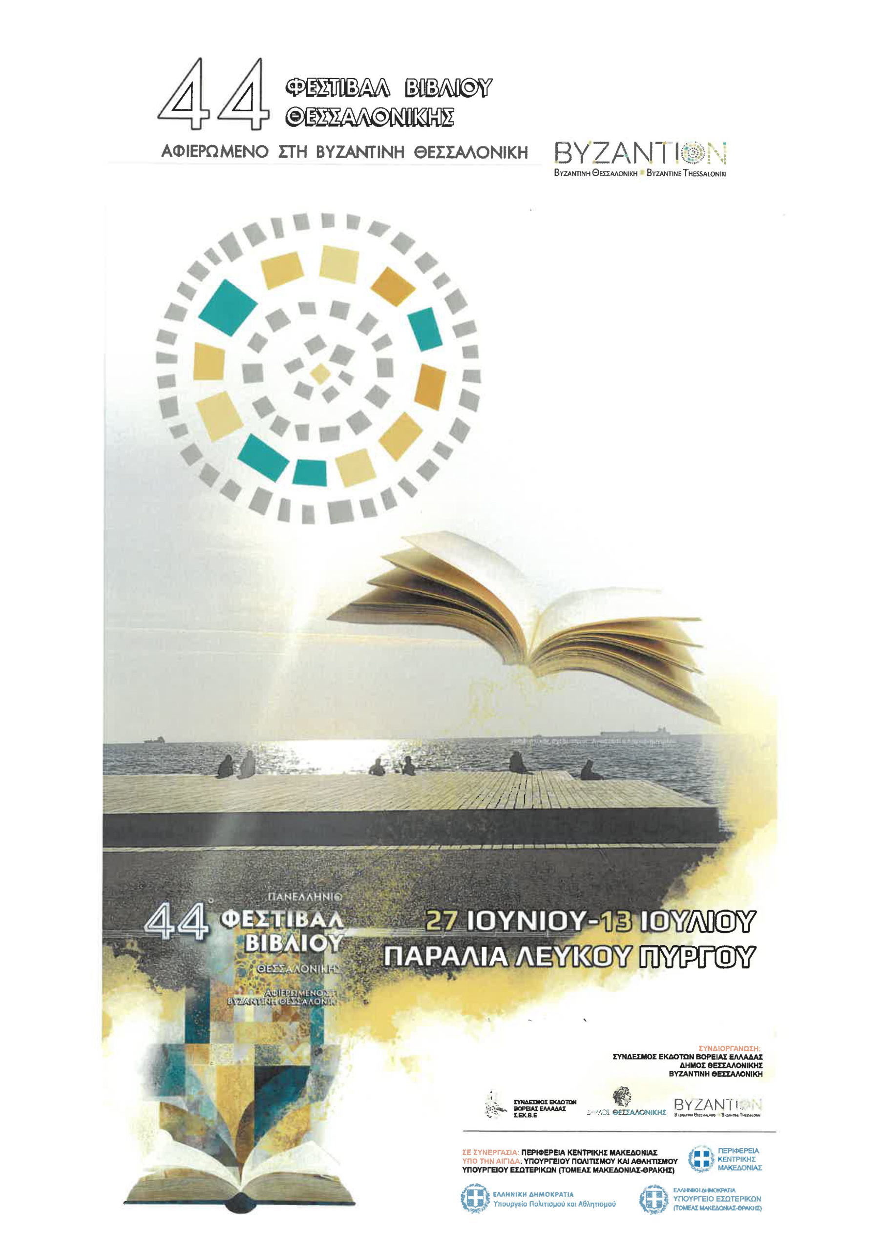 Αφιερωμένο στη Βυζαντινή Θεσσαλονίκη το φετινό Φεστιβάλ Βιβλίου που παραδοσιακά αναπτύσσεται στο παραλιακό μέτωπο της πόλης, ελκύοντας χιλιάδες επισκεπτών που έμαθαν να το περιμένουν και να το αγκαλιάζουν σαν μια.. «πανήγυρι γνώσης» αλλά και ως μια ευκαιρία για ένα άνοιγμα, μια επικοινωνία του έργου των εκδοτών και των συγγραφέων που εκπροσωπούν με το ευρύ κοινό.