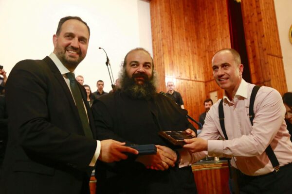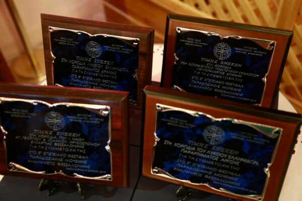 Στο τέλος της εκδήλωσης ο κ. Πέτρος Παπαεμμανουήλ εξέφρασε τις ευχαριστίες του για την πραγματοποίηση της εκδήλωσης στον προϊστάμενο του Ι. Ν. π. Φώτιο που με την στήριξη του όλα κύλησαν καλώς αλλά και προς κάθε έναν ξεχωριστά και μοίρασε αναμνηστικές πλακέτες στους χοράρχες – χοροδιδασκάλους.