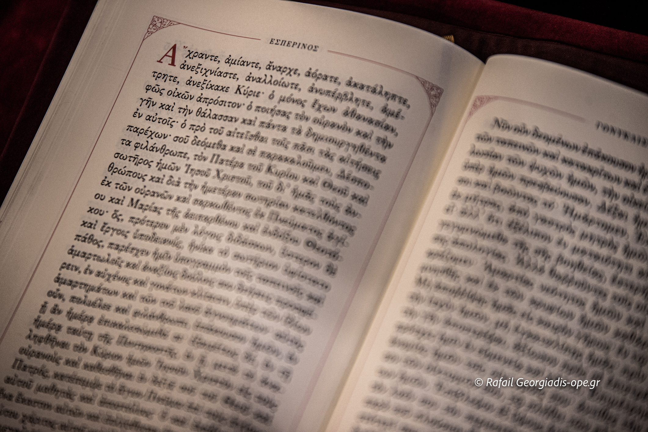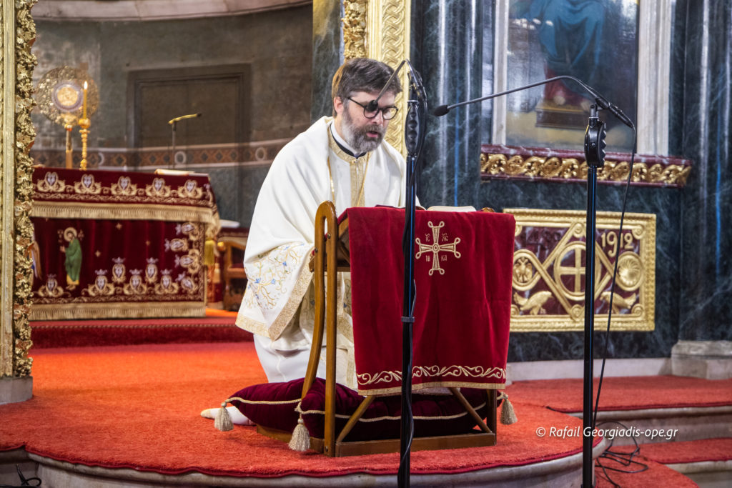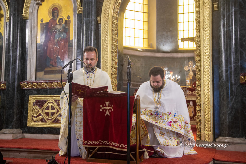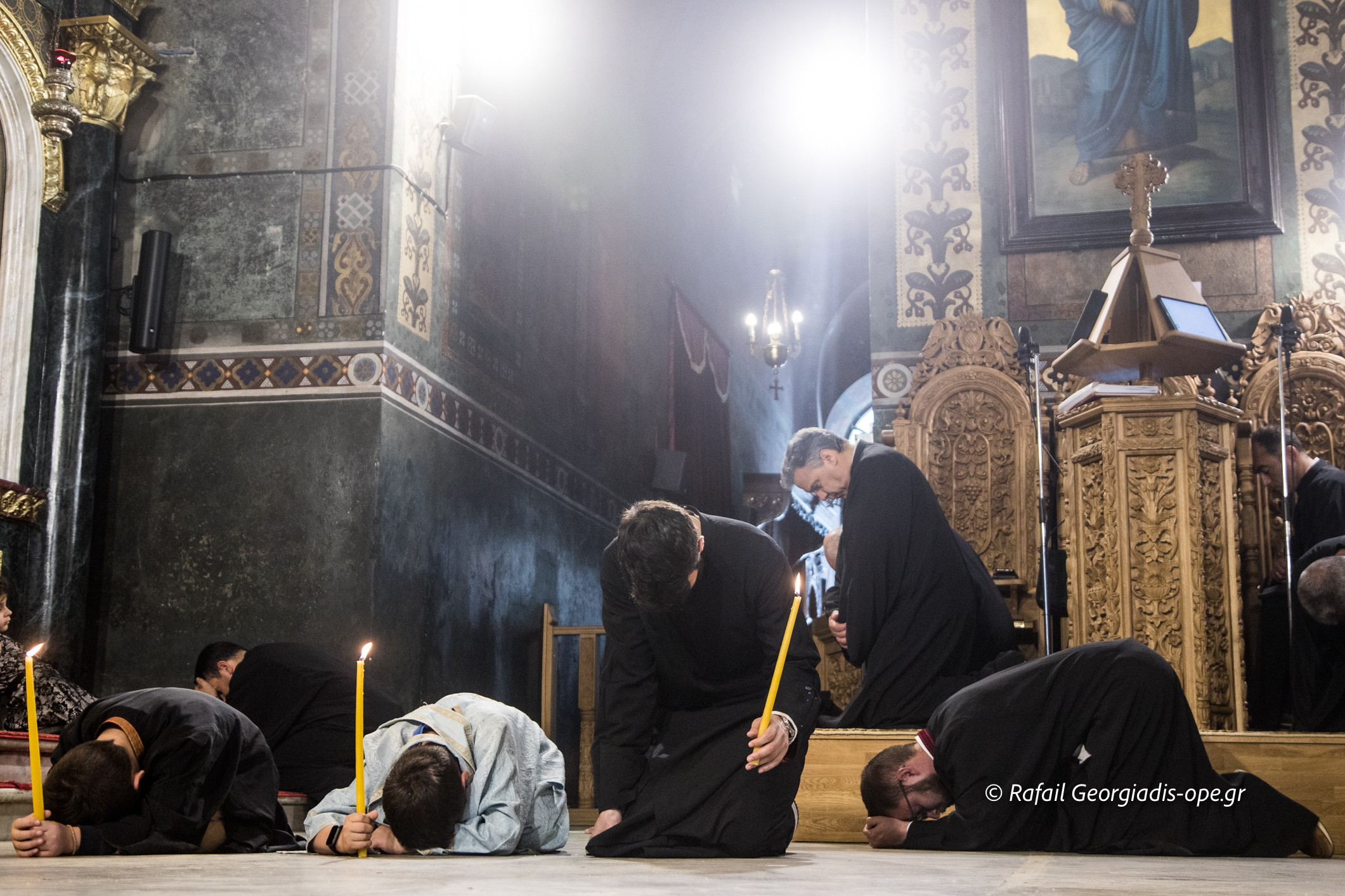 Αμέσως μετά τη Θεία Λειτουργία τελέστηκε ο Εσπερινός της Γονυκλισίας όπου αναγνώστηκαν ευχές από την Ωραία Πύλη.