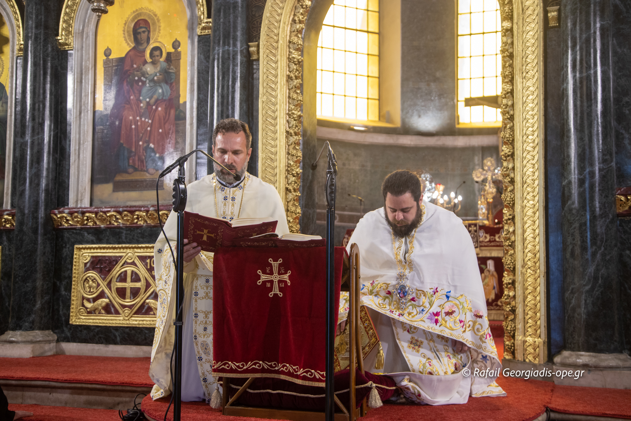 Την πανηγυρική και Θεία Λειτουργία και στη συνέχεια την ακολουθία του Εσπερινού, κατά την οποία αναγιγνώσκονται οι ευχές της Γονυκλισίας, τέλεσαν, ο προϊστάμενος του Καθεδρικού ναού Αρχιμανδρίτης Ειρηναίος Βογιατζής, ο Πρωτ. Βιορελ Ντίνκα, ο Πρωτ. Παλαιολόγος Μάνος, ο Πρωτ. Νικόλαος Ζουγκανάρου και ο διάκονος Σπυρίδων Καραταΐδης.
