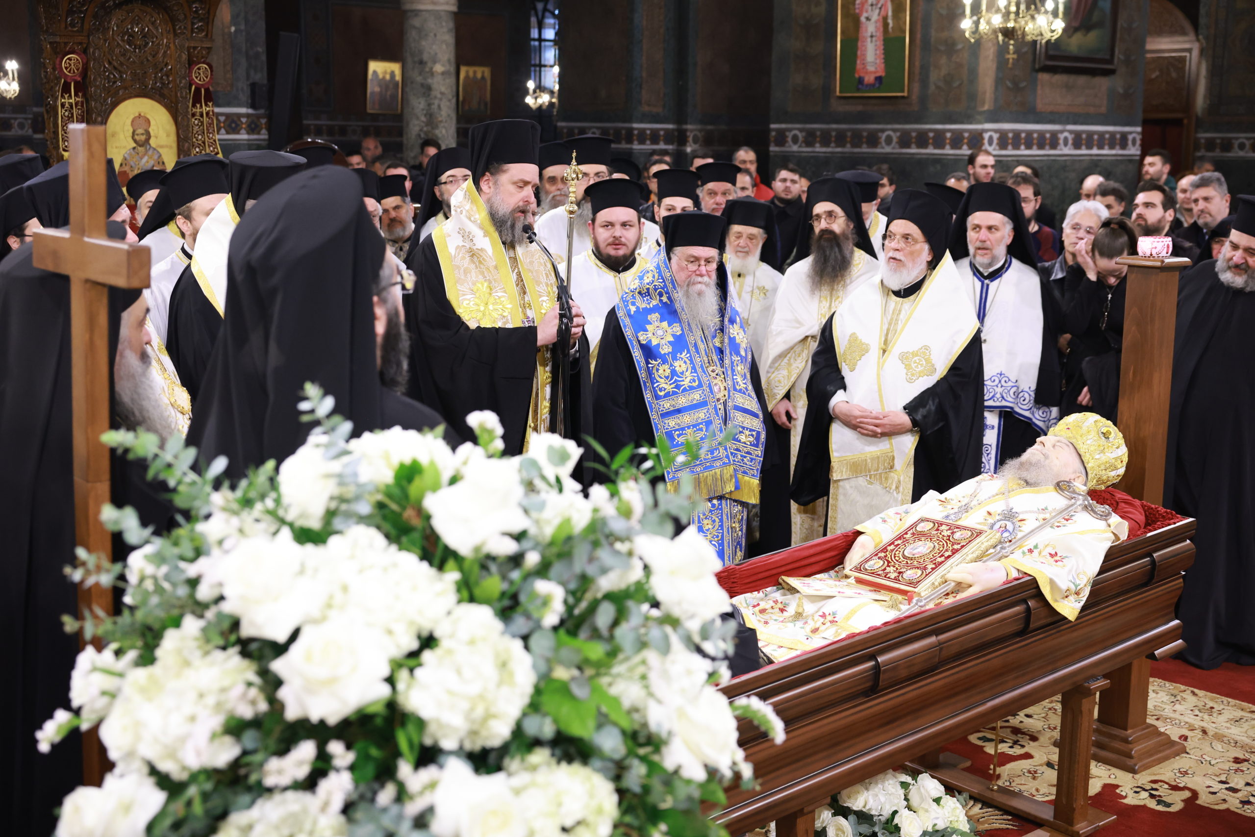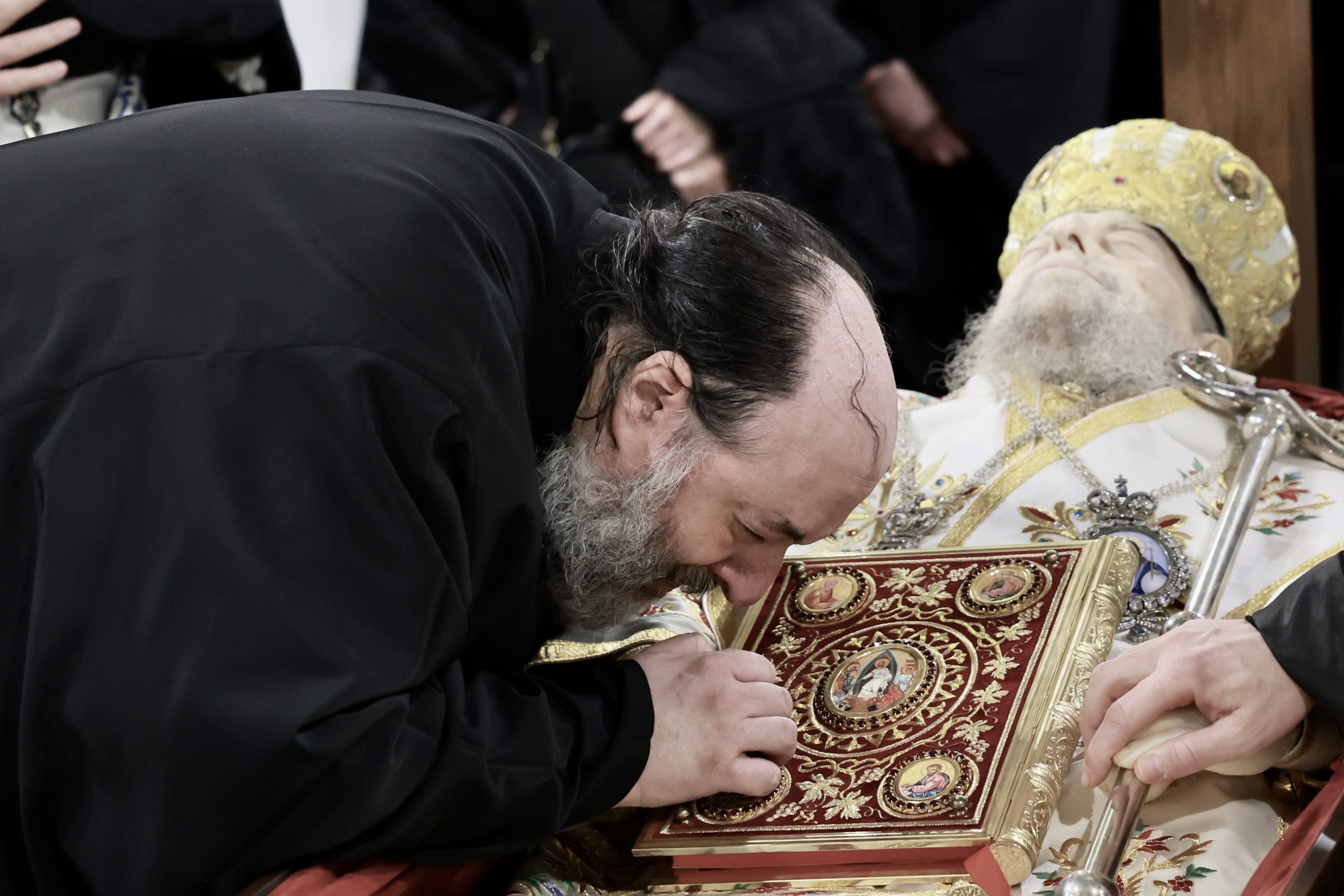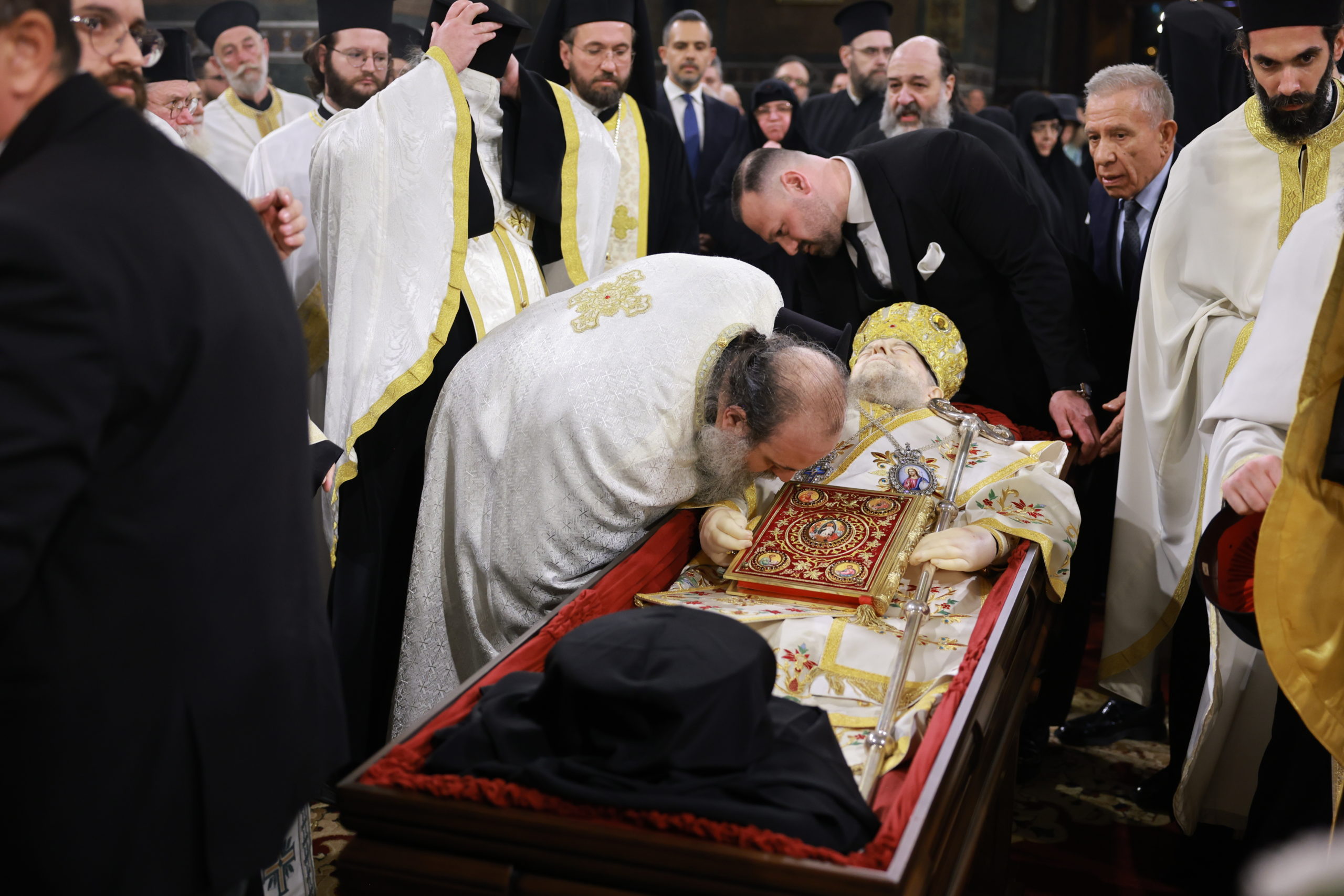 Τα φώτα χαμήλωσαν, το σκήνωμα τοποθετήθηκε μπροστά στην Ωραία Πύλη, εκεί όπου για χρόνια στεκόταν ο ίδιος και δίδασκε τον λόγο του Θεού.