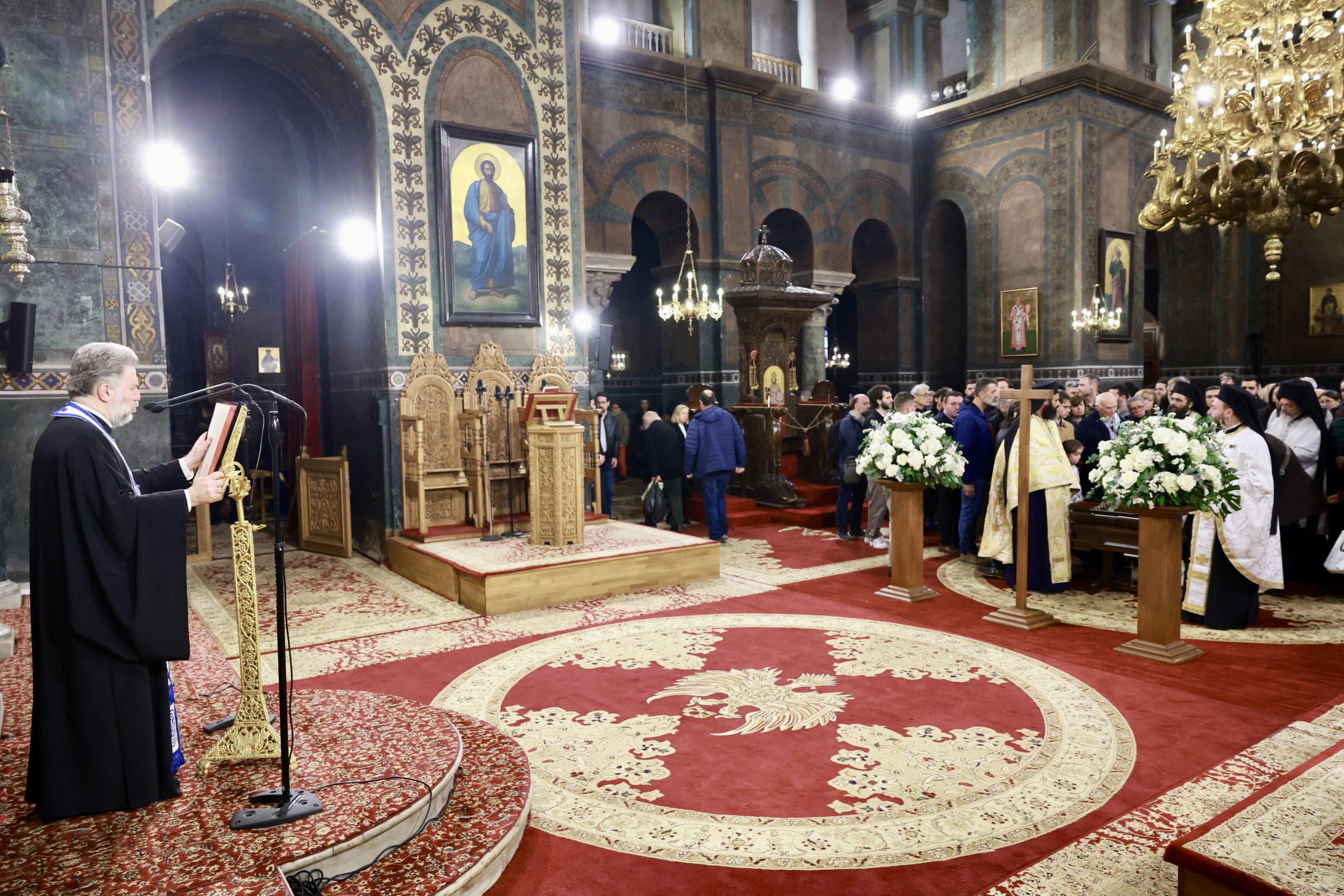 Το τρισάγιο τελέστηκε από τον Παναγιώτατο Μητροπολίτη Θεσσαλονίκης κ. Φιλόθεο, τον οποίο πλαισίωσε ο Μητροπολίτης Αλεξανδρουπόλεως κ. Άνθιμος, ο Μητροπολίτης Φιλίππων κ. Στέφανος, ο Μητροπολίτης Φλωρίνης κ. Ειρηναίος και ο Επίσκοπος Ρηγίου κ.Ειρηναίος. Ο ποιμενάρχης των Θεσσαλονικέων πλαισιώθηκε από όλους τους ιερείς και τους διακόνους της Μητροπόλεως.