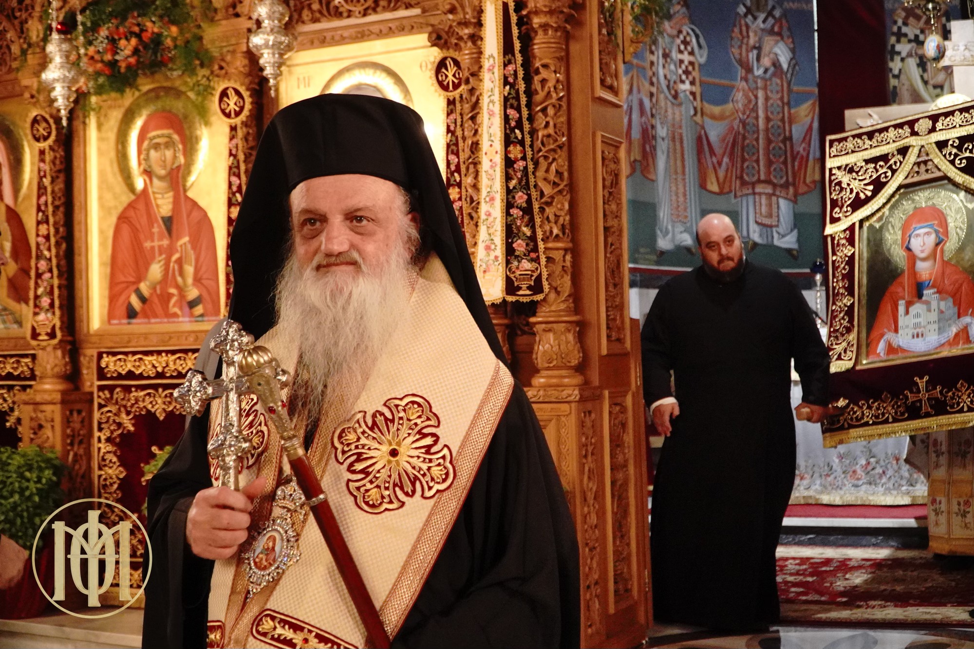Της Λιτάνευσης, προεξήρχε ο Σεβασμιώτατος Αρχιεπίσκοπος Λύδδης κ. Δημήτριος, ο οποίος μετά την απόλυση, κατά τον σύντομο λόγο του, μίλησε στο πολυπληθές εκκλησίασμα για την παρουσία των Αγίων μας στην καθημερινότητα της ζωής μας και την ανάγκη να τους επιζητούμε γιατί η παρουσία των Αγίων μας είναι ζωντανή και επίσης ευχαρίστησε τον Ποιιμενάρχη, Μητροπολίτη Θεσσαλονίκης κ. Φιλόθεο για την συμμετοχή στις πανηγυρικές Ιερές Ακολουθίες του Ιερού Ναού, καθώς επίσης και τον Ιερατικό Προϊστάμενο, π. Διονύσιο Νικολαΐδη και τους συνεφημερίους του για την άριστη διεξαγωγή της Πανηγύρεως.