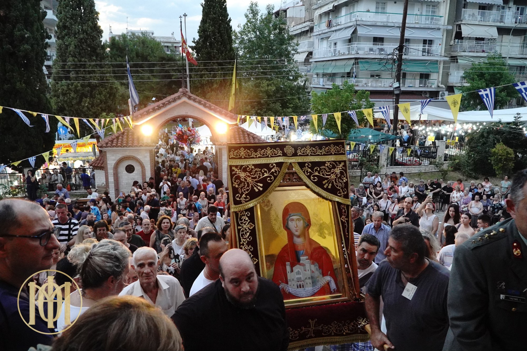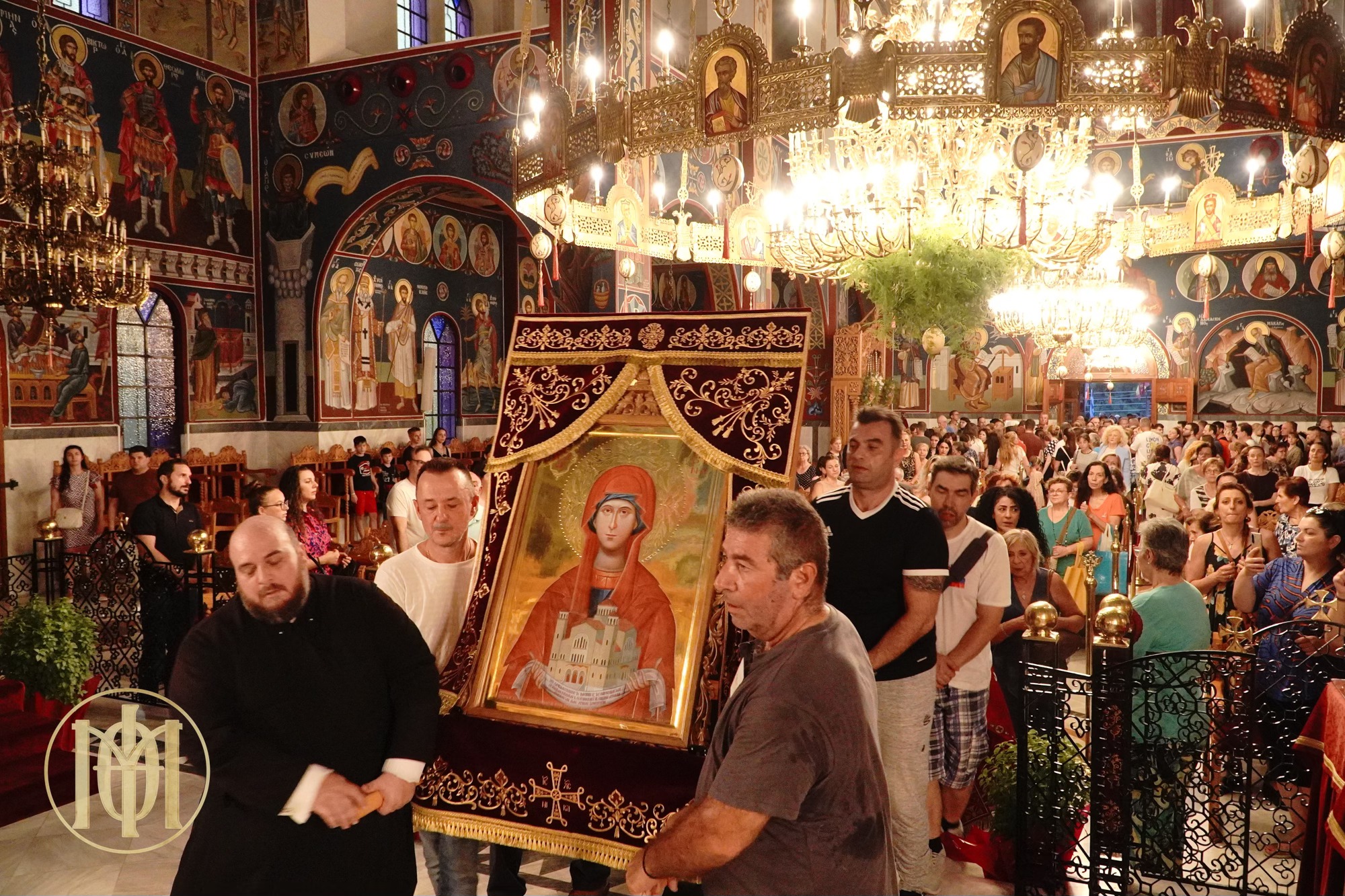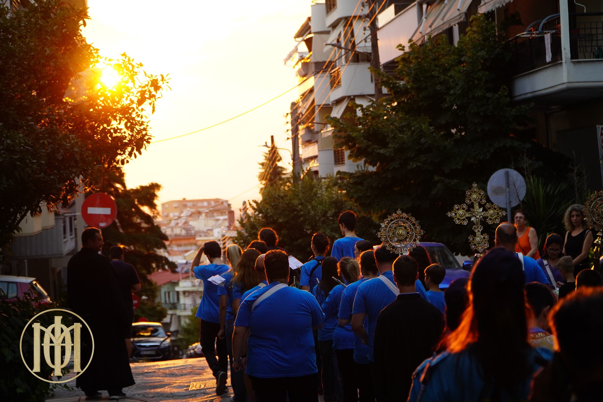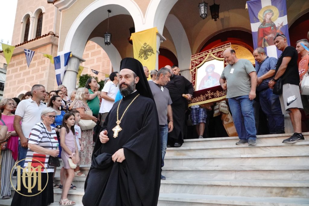 Μετά την τέλεση του μεθέορτου Εσπερινού και της ακολουθίας του Ιερού Ευχελαίου, πραγματοποιήθηκε η Λιτάνευση του Ιερού Λειψάνου και της Ιεράς Εικόνος της αγίας Μαρίνας στις κεντρικές οδούς πέριξ του Ιερού Ναού.