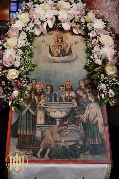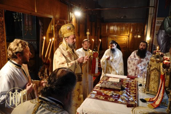Ο Μητροπολίτης Θεσσαλονίκης, μετά την ανάγνωση του ιερού ευαγγελικού αναγνώσματος, κήρυξε τον θείο λόγο, στον κατάμεστο Καθολικό της Ιεράς Μονής από φιλεόρτους πιστούς, οι οποίοι ανήλθαν στην Ιερά Μονή να συνεορτάσουν την σημερινή ημέρα.