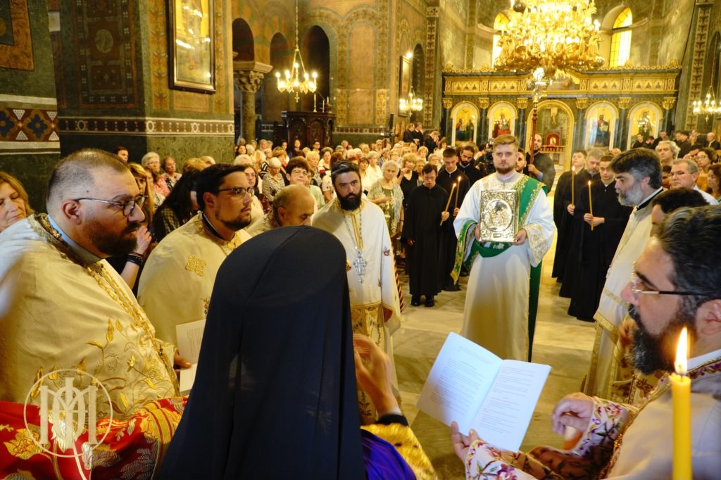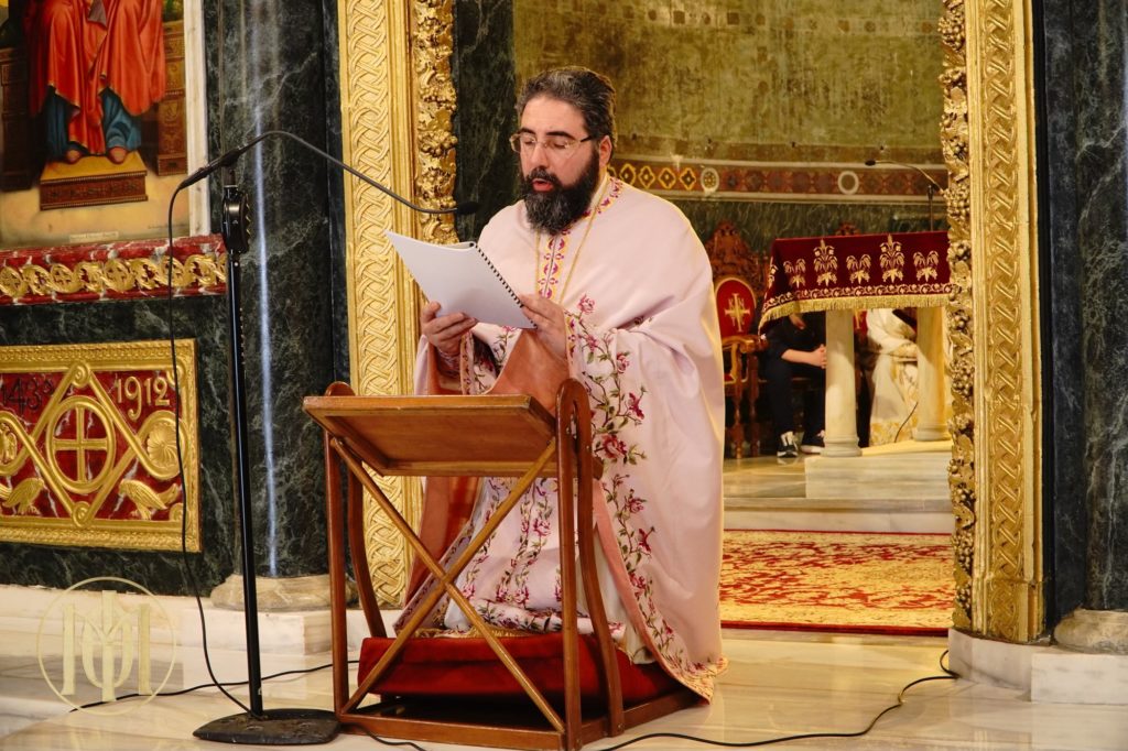 Προ της ενάρξεως του Εσπερινού, ο Ιερατικός Προϊστάμενος του Καθεδρικού Ιερού Ναού, π. Γεώργιος Χειλάς, αφού ευχαρίστησε τον Μητροπολίτη κ. Φιλόθεο για την ευλογία που έδωσε να τελεσθεί το παρόν τυπικό στον Καθεδρικό Ιερό Ναό, ύστερα από πολλές δεκαετίες, καθώς υπήρξε παλαιά παράδοση που τελούνταν αυτό το τυπικό στον συγκεκριμένο Ναό της πόλης, ευχαρίστησε επίσης και τον προεξάρχοντα Αρχιερέα για την παρουσία του στον πανηγυρίζοντα Ιερό Ναό.