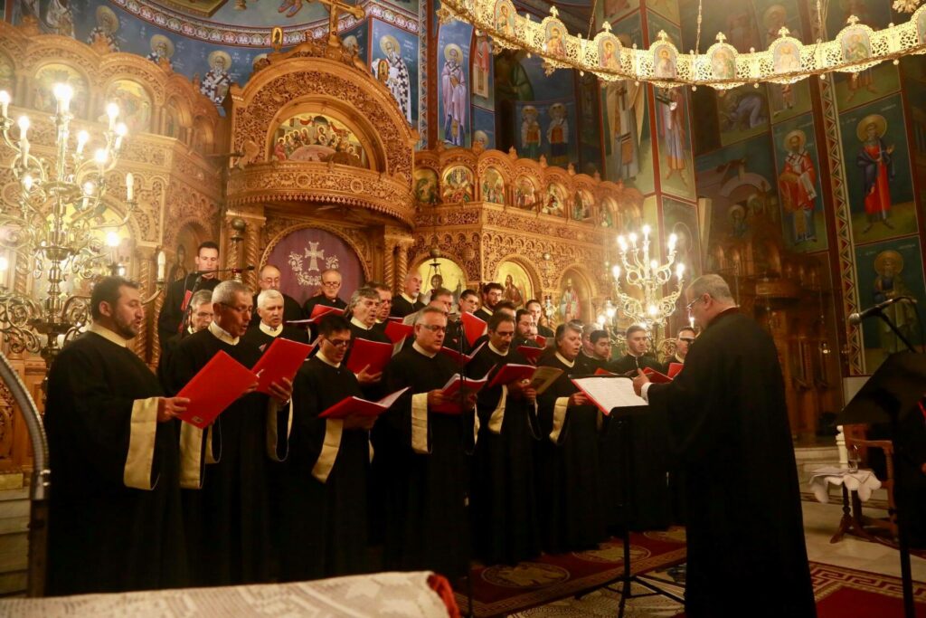 Με επιτυχία πραγματοποιήθηκε η συνάντηση των Πρωτοψαλτών της Μακεδονίας με τίτλο “Ψάλλοντας τα μεγαλεία του Θεού” στον Ιερό Ναό Κοιμήσεως Θεοτόκου 40 Εκκλησιών Θεσσαλονίκης. Οι φιλόμουσοι που γέμισαν τον μεγαλοπρεπή ιερό ναό είχαν την ευκαιρία να ακούσουν μέλη της βυζαντινής μουσικής από έμπειρους δάσκαλους της ψαλτικής, τους άρχοντες οφικιάλιους της Μ. τ. Χ. Ε. Σωτήριο Αρβανίτη, Άρχοντα Υμνωδό, Αθανάσιο Βουγιουκλή, Άρχοντα Υμνωδο, Στέφανο Δόντσιο, Άρχοντα Μουσικοδιδάσκαλο.