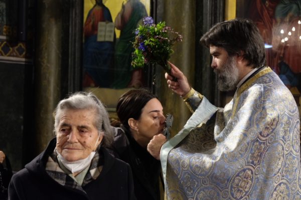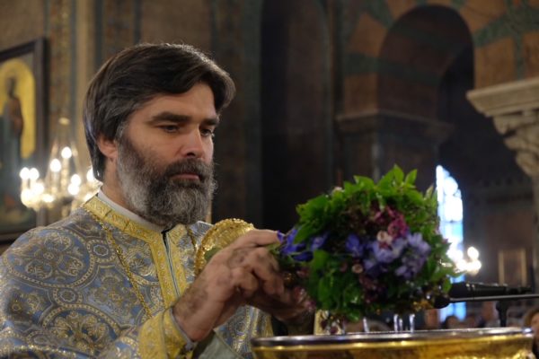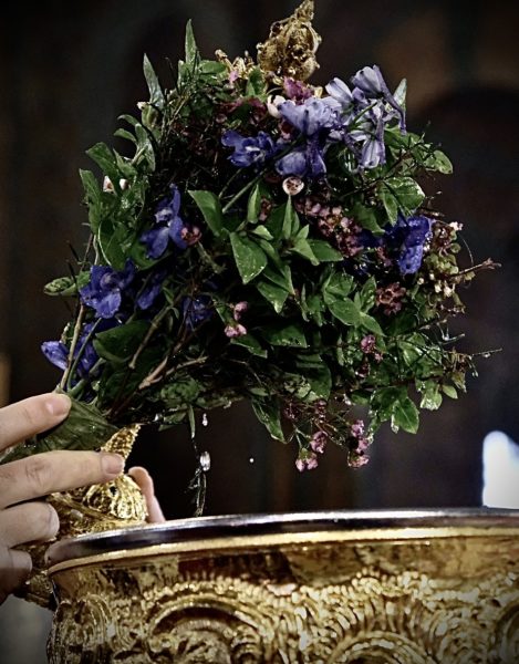 Στο τέλος της Θείας Λειτουργίας τελέσθηκε η Ακολουθία του Μεγάλου Αγιασμού, όπου οι ιερείς του ναού αγίασαν τα ύδατα και ράντισαν τους πιστούς.