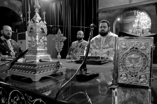 Την Θεία Λειτουργία τέλεσαν οι ιερείς του ναού, ο προϊστάμενος Αρχιμ. Ειρηναίος Βογιατζής, οι Εφημέριοι, Πρωτ. Παλαιολόγος Μάνος, Πρωτ. Νικόλαος Ζουγκανάρου και ο ιεροδιάκονος Αλέξανδρος Νικολόγιου.