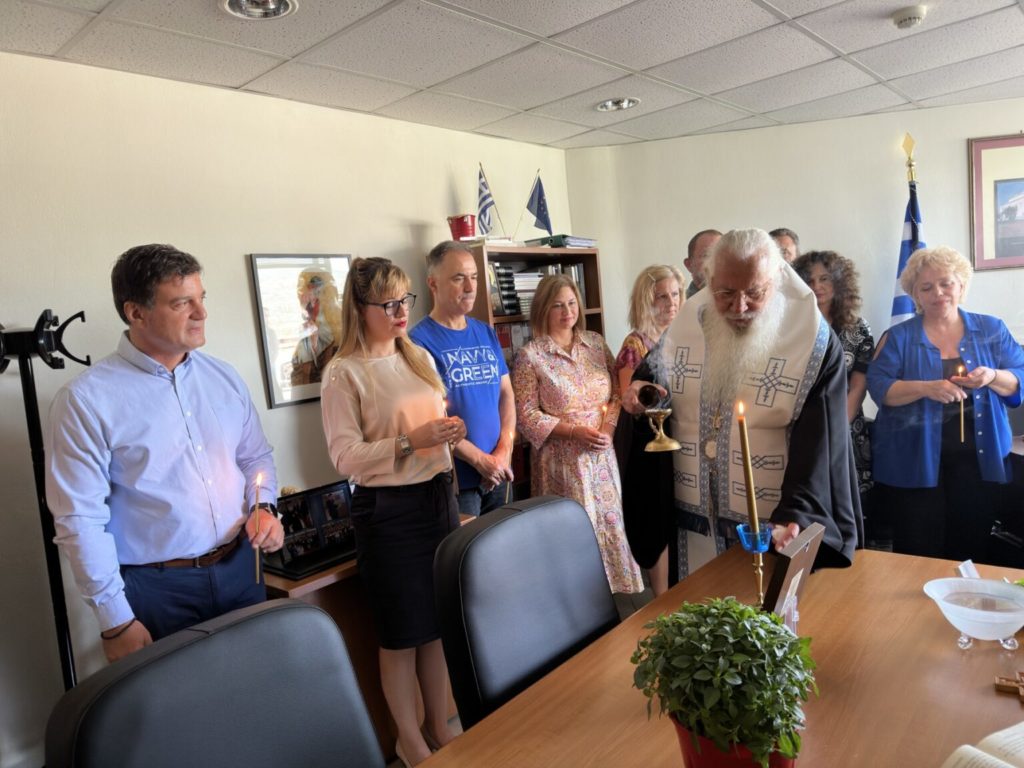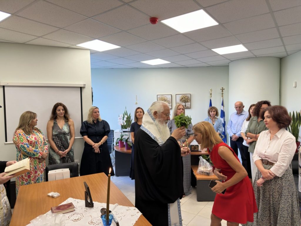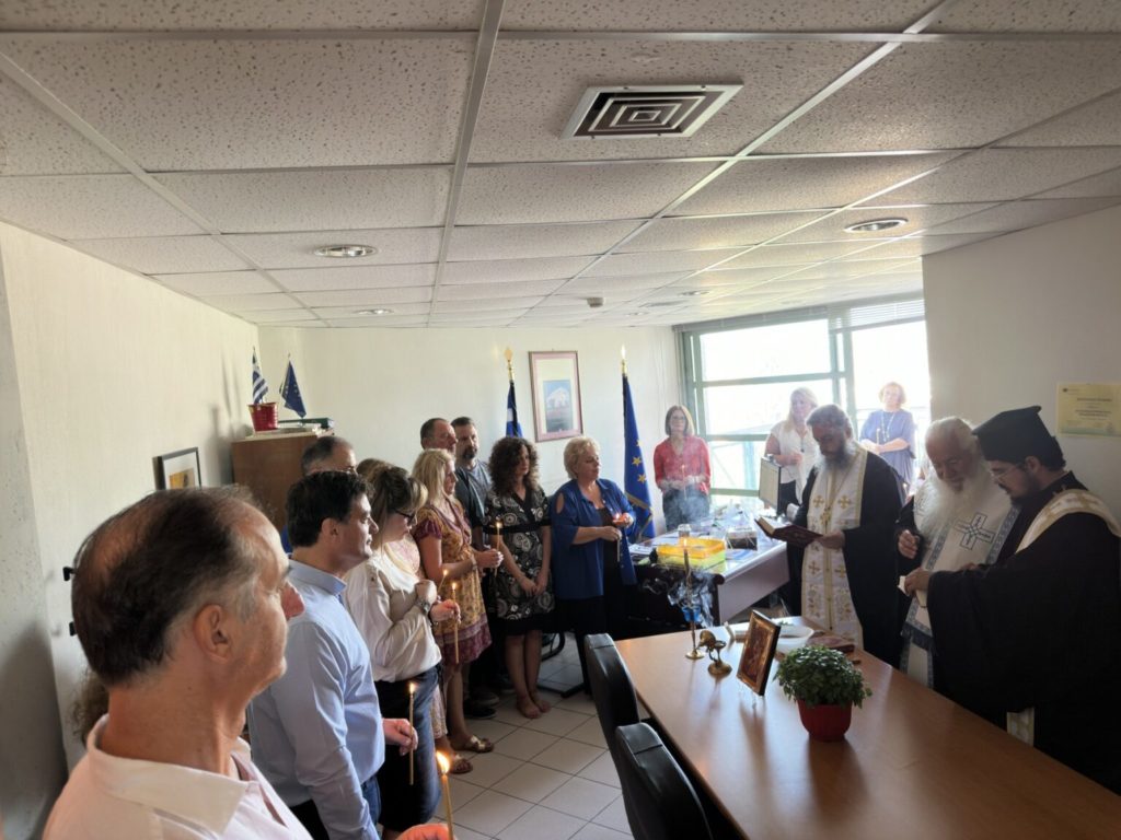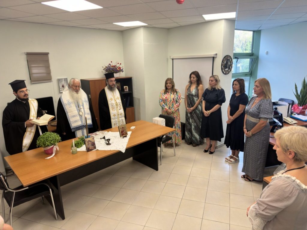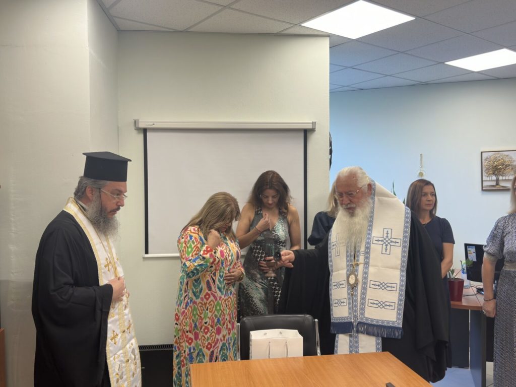 Ο Σεβασμιώτατος τέλεσε τον Αγιασμό πρώτα στα γραφεία της Πρωτοβάθμιας Εκπαίδευσης και στη συνέχεια στα γραφεία της Δευτεροβάθμιας, με τη συμμετοχή των διοικητικών υπαλλήλων και εκπαιδευτικών των Διευθύνσεων.