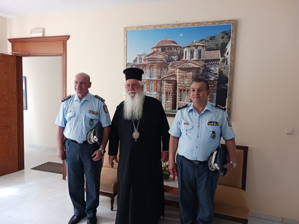 Ο Σεβασμιώτατος ευχήθηκε στον κ. Παπαφιλίππου, με την ευκαιρία της ανάληψης καθηκόντων στην Αστυνομική Διεύθυνση Στερεάς Ελλάδας, καλή επιτυχία στο έργο του, όπως και στον κ. Μπακούμη.