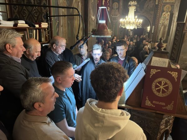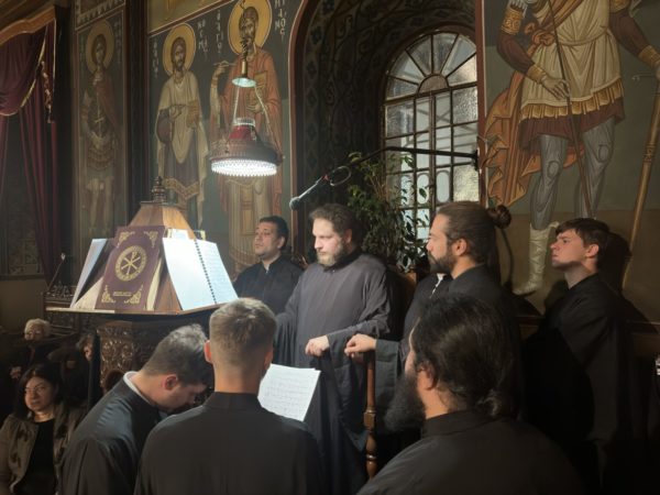 Στον Εσπερινό έψαλε η βυζαντινή χορωδία της Ιεράς Μητροπόλεως Θηβών, Λεβαδείας και Αυλίδος υπό τη διεύθυνση του Πρωτοψάλτη του Μητροπολιτικού Ναού Λεβαδείας κ. Ηλία Στάθη και ο χορός ψαλτών «Ενήχημα» υπό τη διεύθυνση του Πρωτοψάλτη κ. Σωτηρίου Κουτσούρη.