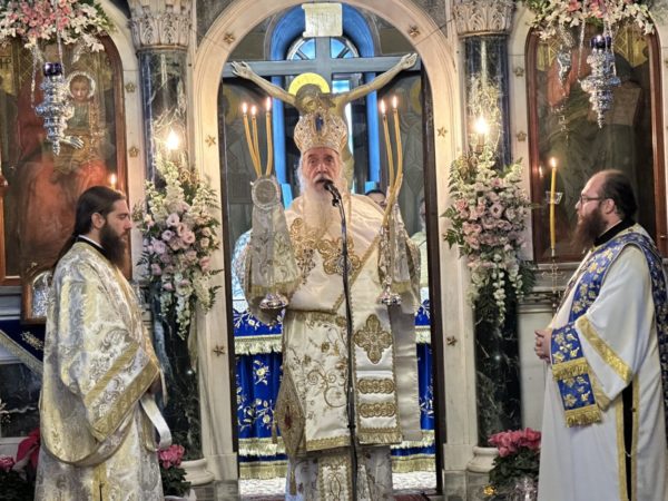Γίνεται ο καθαρώτατος Ναός του Σωτήρος Χριστού. Ανέφερε ότι η Παναγία είναι η κιβωτός της Καινής Διαθήκης και ενώ η κιβωτός της Π.Διαθήκης έσωσε από τον κατακλυσμό, η Παναγία είναι η κιβωτός που μας προστατεύει και μας σώζει από τον κατακλυσμό της αμαρτίας.