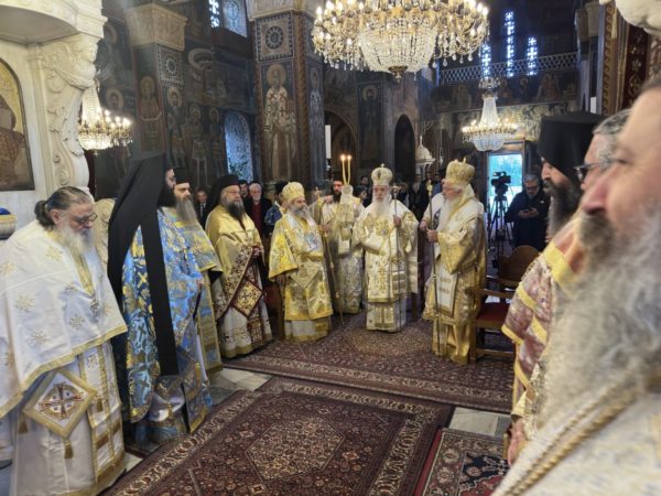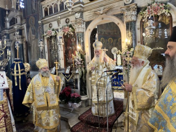 Ο Σεβασμιώτατος Μητροπολίτης κ. Γεώργιος καλωσόρισε τους Αρχιερείς και ευχήθηκε σε όλους τους πιστούς Χρόνια πολλά και η ευλογία και η αγάπη της Παναγίας να σκεπάζει όλους.