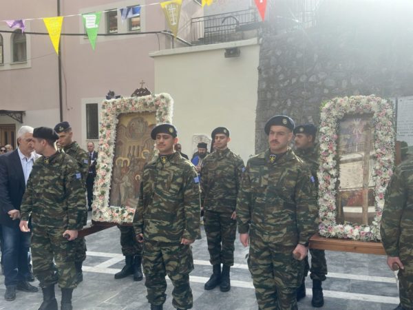 Κατόπιν, ακολούθησε η λιτάνευση των ιερών Εικόνων της Παναγίας στους δρόμους της Λιβαδειάς, με τη συνοδεία στρατιωτικού αγήματος και υπό τους ήχους της Φιλαρμονικής του Δήμου Λεβαδέων, με τη συμμετοχή των αρχών του τόπου, εκπροσώπων των Ενόπλων Δυνάμεων, των Σωμάτων Ασφαλείας και πλήθους κόσμου.