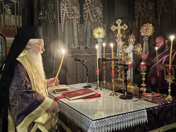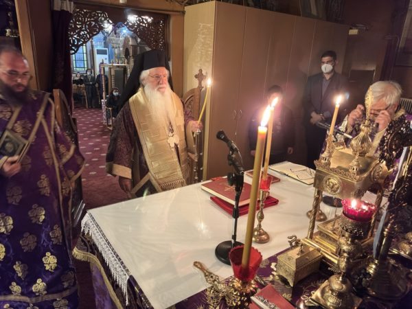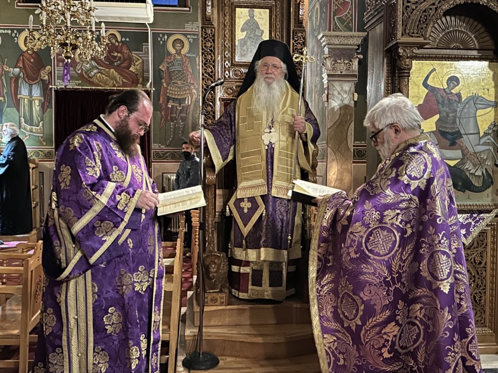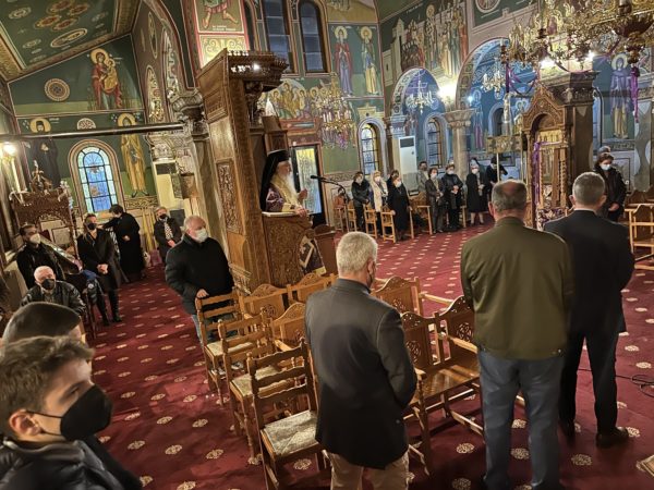 Το εσπέρας της Τετάρτης 8 Μαρτίου ο Σεβασμιώτατος τέλεσε τη Θεία Λειτουργία των Προηγιασμένων Τιμίων Δώρων στον Ιερό Ναό του Αγίου Γεωργίου Ακραιφνίου με τη συμμετοχή των πιστών της ενορίας. Ο Σεβασμιώτατος με αφορμή την εορτή των Αγίων Τεσσαράκοντα στο κήρυγμα αναφέρθηκε στους Αγίους που μαρτύρησαν στη λίμνη της Σεβάστειας το 320 μ.Χ., τονίζοντας την καρτερία, την υπομονή και τη μεγάλη τους πίστη στο Θεό και ευχήθηκε σε όλους τους πιστούς καλό υπόλοιπο Αγίας Τεσσαρακοστής.