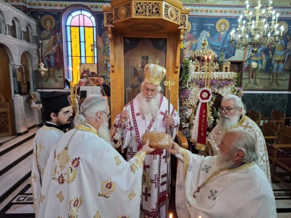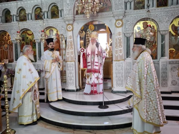 Την Αρχιερατική Θεία Λειτουργία τέλεσε ο Σεβασμιώτατος Μητροπολίτης Θηβών, Λεβαδείας και Αυλίδος κ. Γεώργιος πλαισιούμενος από τους Οικονόμους π. Χρήστο Αικατερίνη εφημέριο της ώμορης ενορίας Κλειδίου, π. Βασίλειο Κουνάβη εφημέριο Οινόης Αρχιερατικό Επίτροπο Τανάγρας και Δερβενοχωρίων, π. Γεώργιο Μανωλόπουλο εφημέριο του ιερού ναού και τον Διάκονο Θεόδωρο Ευταξία.