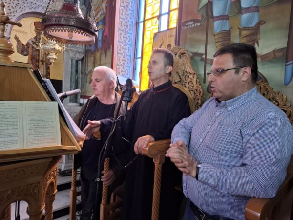 Τους ύμνους απέδωσαν ο Πρωτοψάλτης του ιερού ναού κ. Ευάγγελος Σιακανδάρης, ο Πρωτοψάλτης ιερού ναού Αγιου Ιωάννου Θεολόγου Κλειδίου κ. Αθανάσιος Ίσαρης με την συμμετοχή και άλλων ιεροψαλτών.