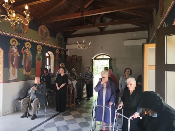 Ο Σεβασμιώτατος στο κήρυγμα αναφέρθηκε στις Μυροφόρες γυναίκες και τον Άγιο Νικόδημο και ευχήθηκε στους εργαζομένους και τους τροφίμους του Θεραπευτηρίου που συμμετείχαν στη Θεία Λειτουργία.