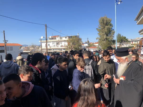 Στη συνέχεια ο Σεβασμιώτατος μετέβη στο Γυμνάσιο Οινοφύτων, όπου τον ανέμεναν οι μαθητές και καθηγητές και ευλόγησε τη βασιλόπιτα του Σχολείου. Ο Σεβασμιώτατος μίλησε στα παιδιά για τους Προστάτες τους Τρεις Ιεράρχες, τους ευχήθηκε Χρόνια πολλά και καλή πρόοδο στα μαθήματά τους και τους μοίρασε εικονάκια των Τριών Ιεραρχών.