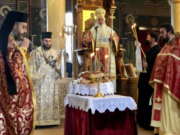 Ο Σεβασμιώτατος Μητροπολίτης κ. Γεώργιος στον Ιερό Ναό του Αγίου Παντελεήμονος Λεβαδείας το Σάββατο 29 Ιανουαρίου τέλεσε τον Εσπερινό και την Κυριακή 30 Ιανουαρίου τέλεσε τη Θεία Λειτουργία και ευλόγησε τους προσφερθέντες άρτους υπέρ υγείας όλων των διδασκόντων και διδασκομένων στα σχολεία.