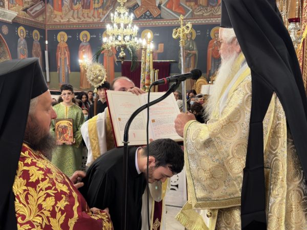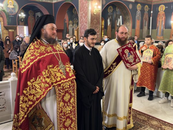 Προ του «Δι’ ευχών» ο Σεβασμιώτατος χειροθέτησε αναγνώστη τον κ. Θεόδωρο Γρεασίδη.