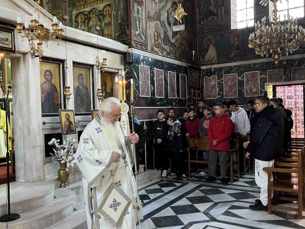 Συγκεκριμένα στη Θεία Λειτουργία συμμετείχαν οι μαθητές του Νηπιαγωγείου, του Δημοτικού και του Γυμνασίου – Λυκείου με τους Διευθυντές και Εκπαιδευτικούς των Σχολείων.