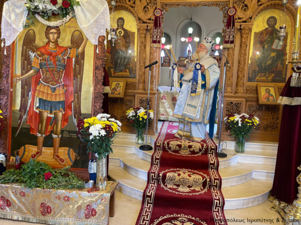 Τέλος, ο Σεβασμιώτατος ευχήθηκε χρόνια πολλά στους εορτάζοντες και ο Αρχάγγελος Μιχαήλ να περιφρουρεί ως άγρυπνος φρουρός και να σκεπάζει υπό την σκέπη των πτερύγων του τα στελέχη της Πολεμικής Αεροπορίας μας που σήμερα τιμούν τον προστάτη τους, αλλά και όλους και τους διερχόμενους από τη δυτική είσοδο της πόλεως όπου βρίσκεται ο πανηγυρίζων ναός.