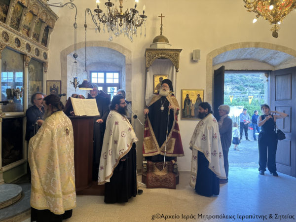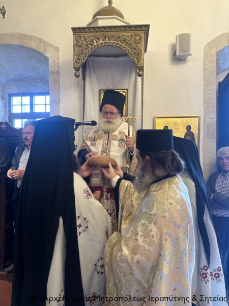 Ο Σεβασμιώτατος Μητροπολίτης Ιεραπύτνης και Σητείας κ. Κύριλλος χοροστάτησε στην Ακολουθία του Εσπερινού, ευλόγησε τους προσφερόμενους άρτους και κήρυξε κατάλληλα τον θείο λόγο στους πιστούς.