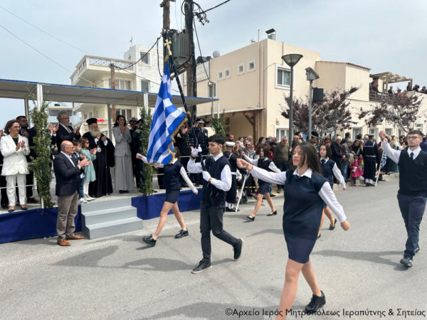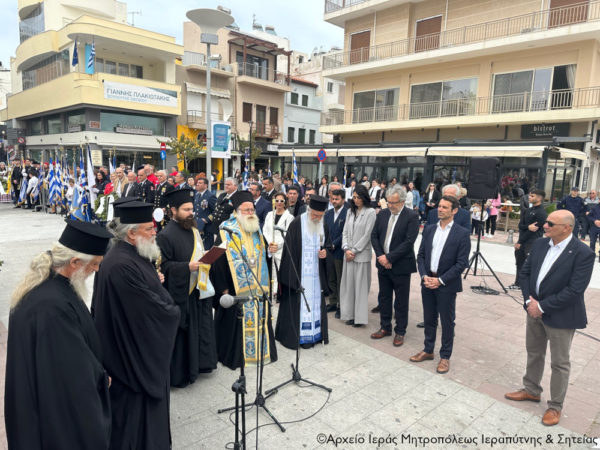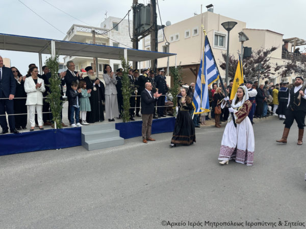 Με τη δέουσα λαμπρότητα και μεγαλοπρέπεια εορτάσθηκε την Τρίτη 25 Μαρτίου η επέτειος της εθνικής παλιγγενεσίας του 1821 στην πόλη της Σητείας. Η Δοξολογία για την εθνική επέτειο της 25ης Μαρτίου του 1821 τελέσθηκε κατά την τάξη στον Ιερό Καθεδρικό Ναό Αγίας Αικατερίνης Σητείας, χοροστατούντος του Σεβασμιωτάτου Μητροπολίτου Ιεραπύτνης και Σητείας κ. Κυρίλλου, με τη συμμετοχή του Ιερού Κλήρου της πόλεως και την παρουσία των εκπροσώπων της Δημοτικής Αρχής, της Περιφερειακής Ενότητας Λασιθίου, των Ενόπλων Δυνάμεων και των Σωμάτων Ασφαλείας, των σχολείων, συλλόγων και σωματείων της πόλης.